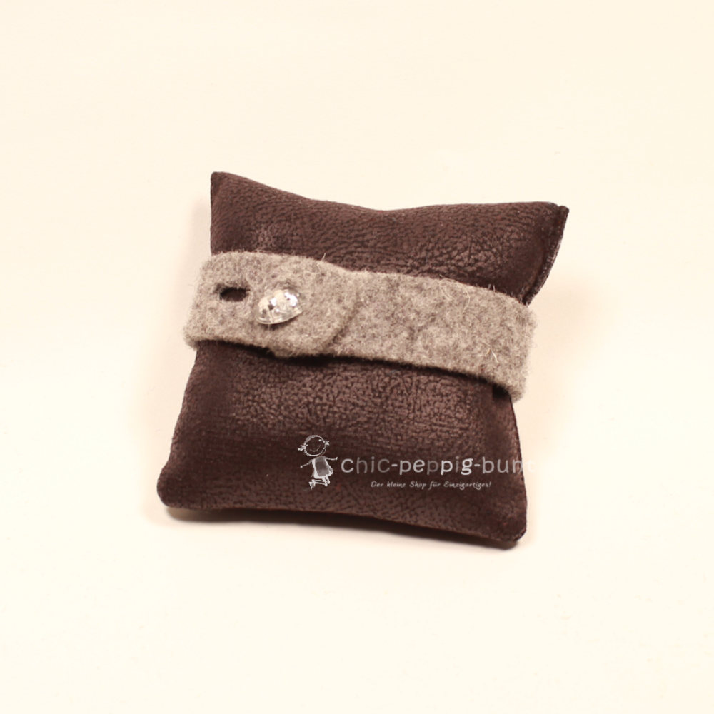 Material-Mix: Hochwertiger hellgrauer Filz, Metall (versilbert), funkelnder Strassstein & geschliffener Glitzer-Kristallknopf
