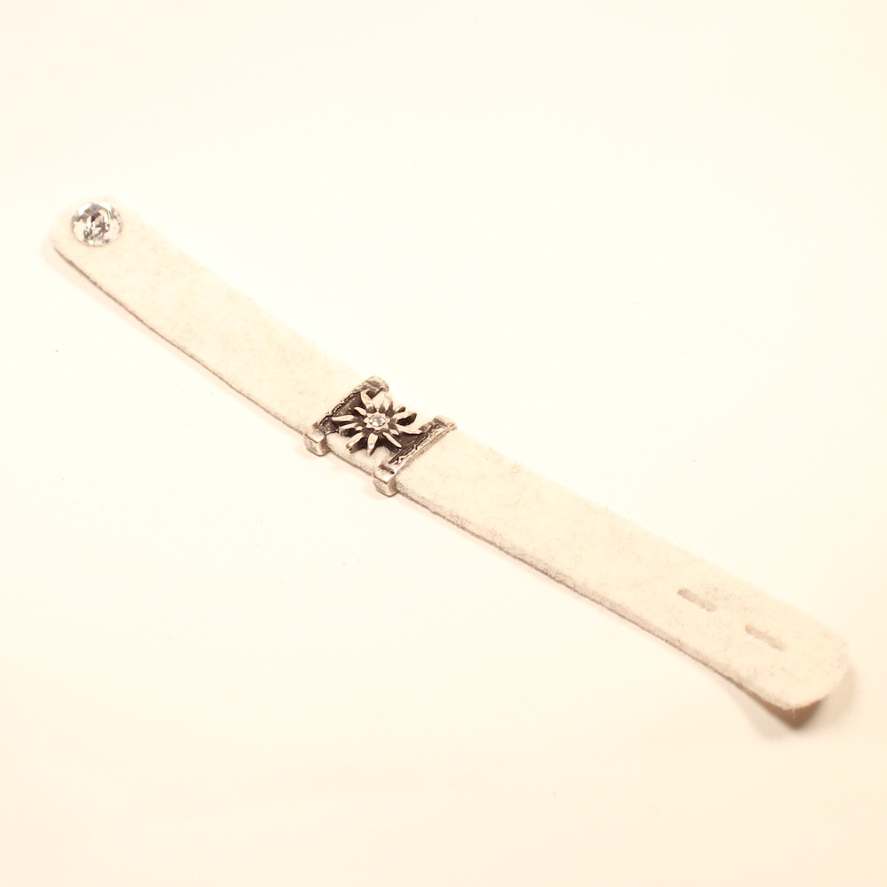 Dieses Armband ist ein echtes Chamäleon. In strahlendem Weiß passt es natürlich hervorragend zu festlicher Trachtenmode oder Hochzeitsdirndln. Aber wer sagt, dass man Tradition nicht auch modern interpretieren darf? Kombiniere das Band als edlen Kontrast zu einer schwarzen Lederjacke oder peppe dein Sommerkleid damit auf. Der weiche Filz wird von deiner Haut geliebt werden, denn er schmiegt sich sanft an, ohne jemals zu stören.