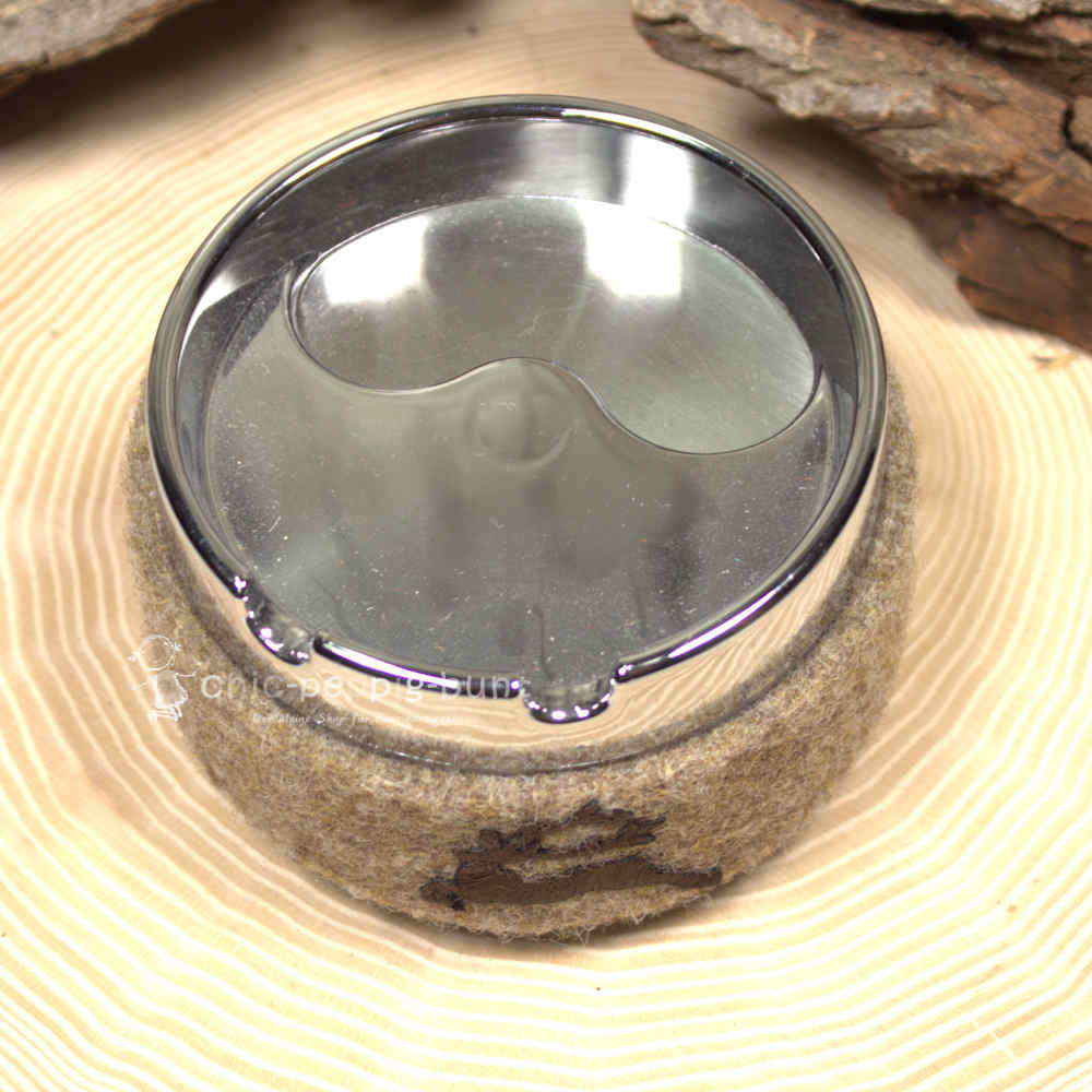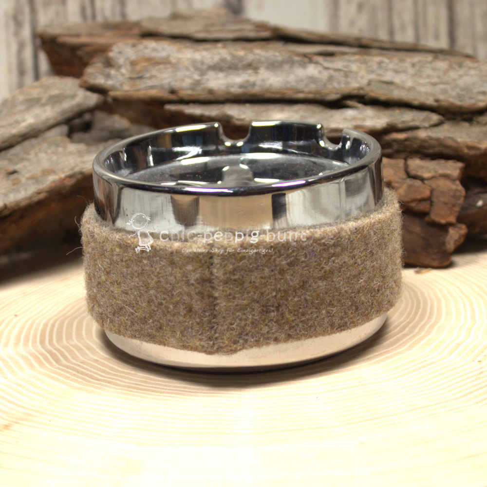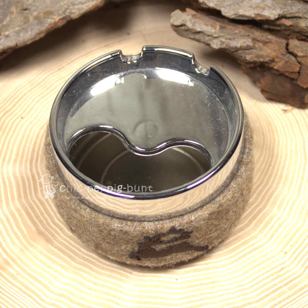 Das Highlight ist die liebevolle Verzierung: Ein detailreiches Hirsch-Motiv ziert den Filz-Mantel als präzise Stickerei. Dieses gestickte Wild verleiht dem Aschenbecher einen unverwechselbaren, alpenländischen Charme. Es fügt sich nahtlos in rustikale Dekorationen oder das traditionelle Ambiente von Biergärten und Hütten ein. Sie setzen damit einen charmanten und witzigen Akzent auf jedem Tisch.