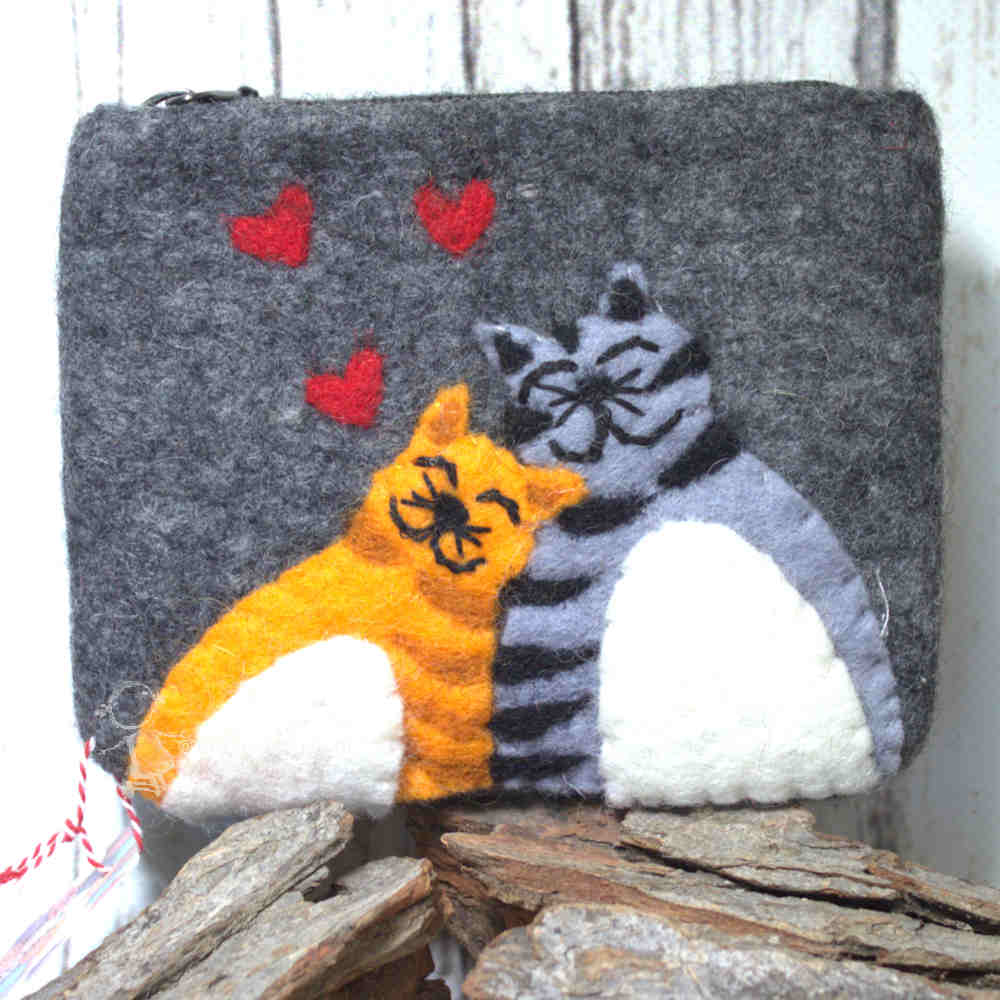 Du suchst eine Utensilientasche, die nicht nur praktisch ist, sondern auch mit ihrem charmanten Design begeistert? Dann ist unser handgefertigtes Filz-Mäppchen mit dem Motiv von zwei süßen Katzen genau das Richtige für dich! Mit ihrem kuscheligen Grau und den liebevollen roten Herzen ist dieses Mäppchen ein absoluter Blickfang. Es bringt nicht nur Ordnung in deine Tasche, sondern auch eine Extraportion Niedlichkeit in deinen Alltag. Dieses Mäppchen ist ein wahres Unikat und ein Muss für alle, die das Besondere lieben und Katzen verehren.