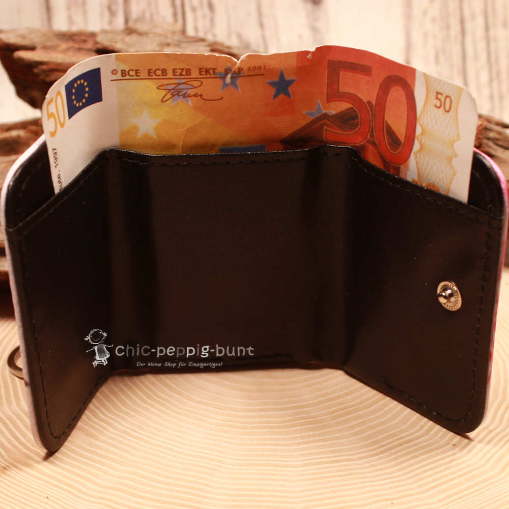 Die Scheine-Residenz: Öffnen Sie den stabilen Druckknopf, um das großzügige Scheinfach freizulegen. Hier bringen Sie Ihre Geldscheine knitterfrei unter. Selbst ein 50-Euro-Schein passt hier problemlos hinein, wie Sie auf unseren Detailfotos sehen können.