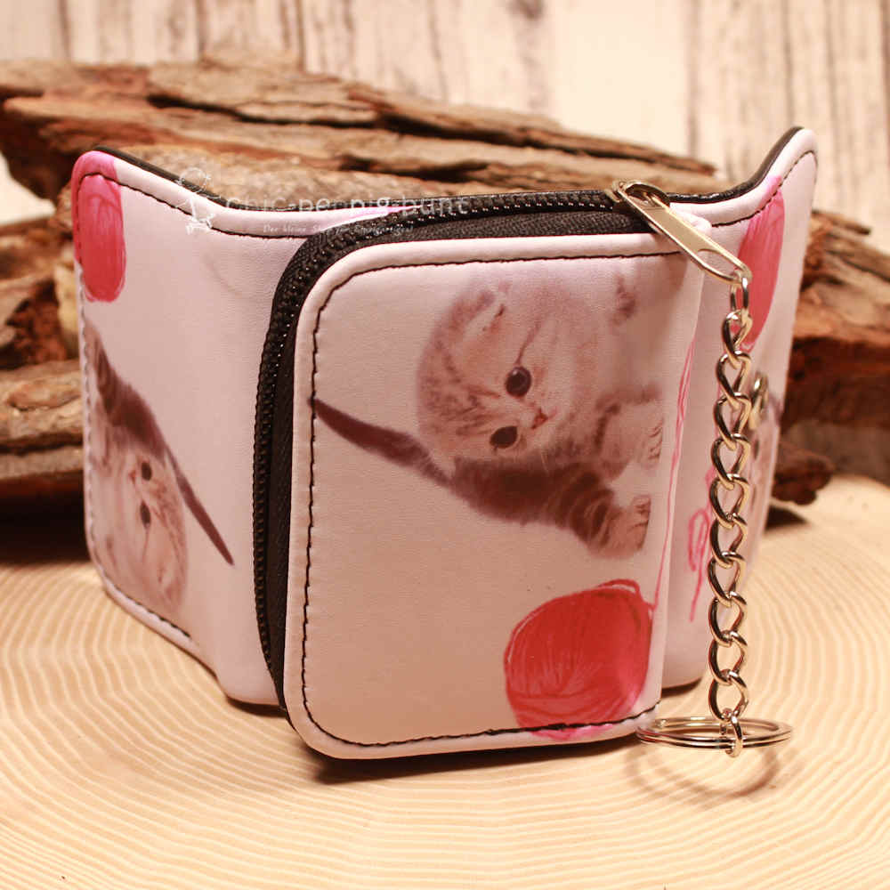 Katzen sind zwar für ihren Eigensinn bekannt, aber dieser Geldbeutel bleibt garantiert bei Ihnen. Eine 8 cm lange Gliederkette aus Metall verbindet das Portemonnaie mit einem stabilen Schlüsselring. Der Ring weist einen Durchmesser von 2,5 cm auf. Befestigen Sie Ihren neuen Begleiter einfach an einer Gürtelschlaufe, im Inneren Ihres Rucksacks oder direkt an Ihrem Schlüsselbund. Durch diese clevere Lösung wird das Verlieren des Taschengeldes fast unmöglich gemacht.