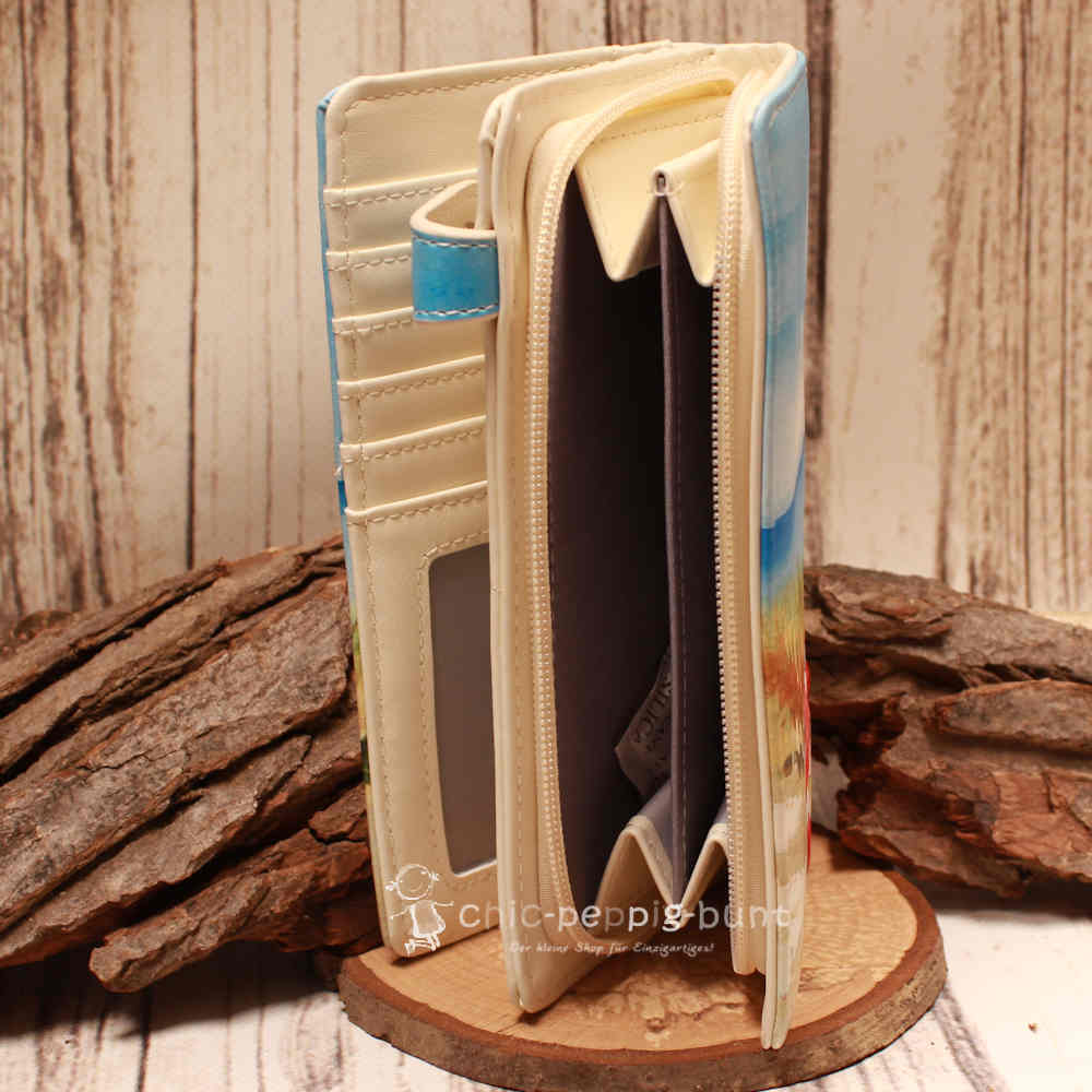Warum sollte eine Brieftasche immer langweilig und schwarz sein? Wir setzen auf Lebensfreude! Das farbenfrohe Motiv zeigt nostalgische Schilder, die den Weg zu den schönsten Orten der Welt weisen. Gefertigt aus hochwertigem Kunstleder, übersteht dieses Portemonnaie mühelos jeden stressigen Alltag. Die Oberfläche fühlt sich nicht nur gut an, sondern sie trotzt auch den Strapazen, die ein großes Organisationstalent nun mal aushalten muss. Das Design wird durch feine Details abgerundet, sodass Sie Ihre neue Geldbörse am liebsten gar nicht mehr weglegen wollen.