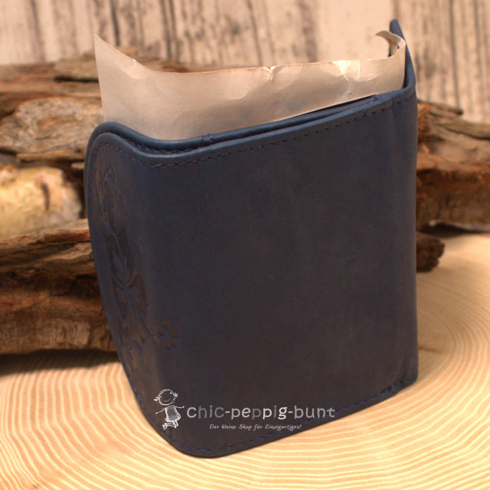 Du suchst nach einem Geldbeutel, der nicht nur minimalistisch, sondern auch ein echter Hingucker ist? Dann hat deine Suche jetzt ein Ende! Dieser kompakte unisex Geldbeutel aus hochwertigem Leder bringt mit seinem wunderschönen Blumenmotiv in kräftigem Blau die gute Laune direkt in deine Tasche. Er ist so klein und handlich, dass du ihn überall hin mitnehmen kannst. Schluss mit dem schweren Klotz in der Handtasche – dieses Portemonnaie ist die elegante und leichte Alternative, die dir den Alltag versüßt. Das robuste Leder fühlt sich super an und verspricht eine lange Lebensdauer.