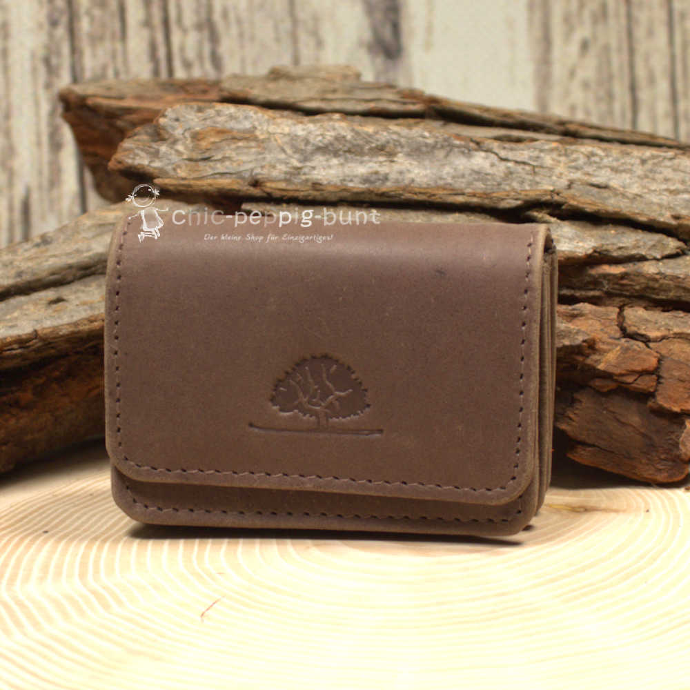 Mini Geldbeutel aus weichem braunem Leder mit 4 Fächer