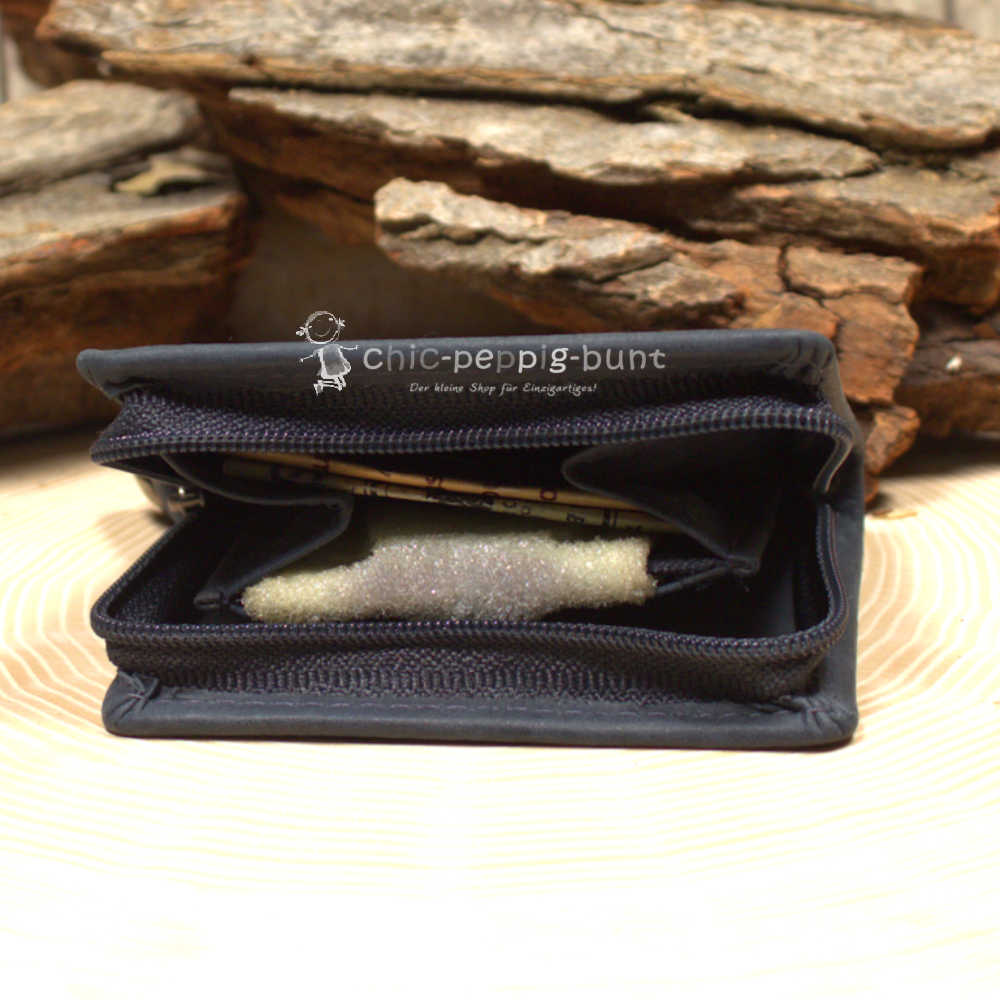 Mini Geldbeutel aus weichem dunkelblau Leder mit 2 Fächer für Kleingeld