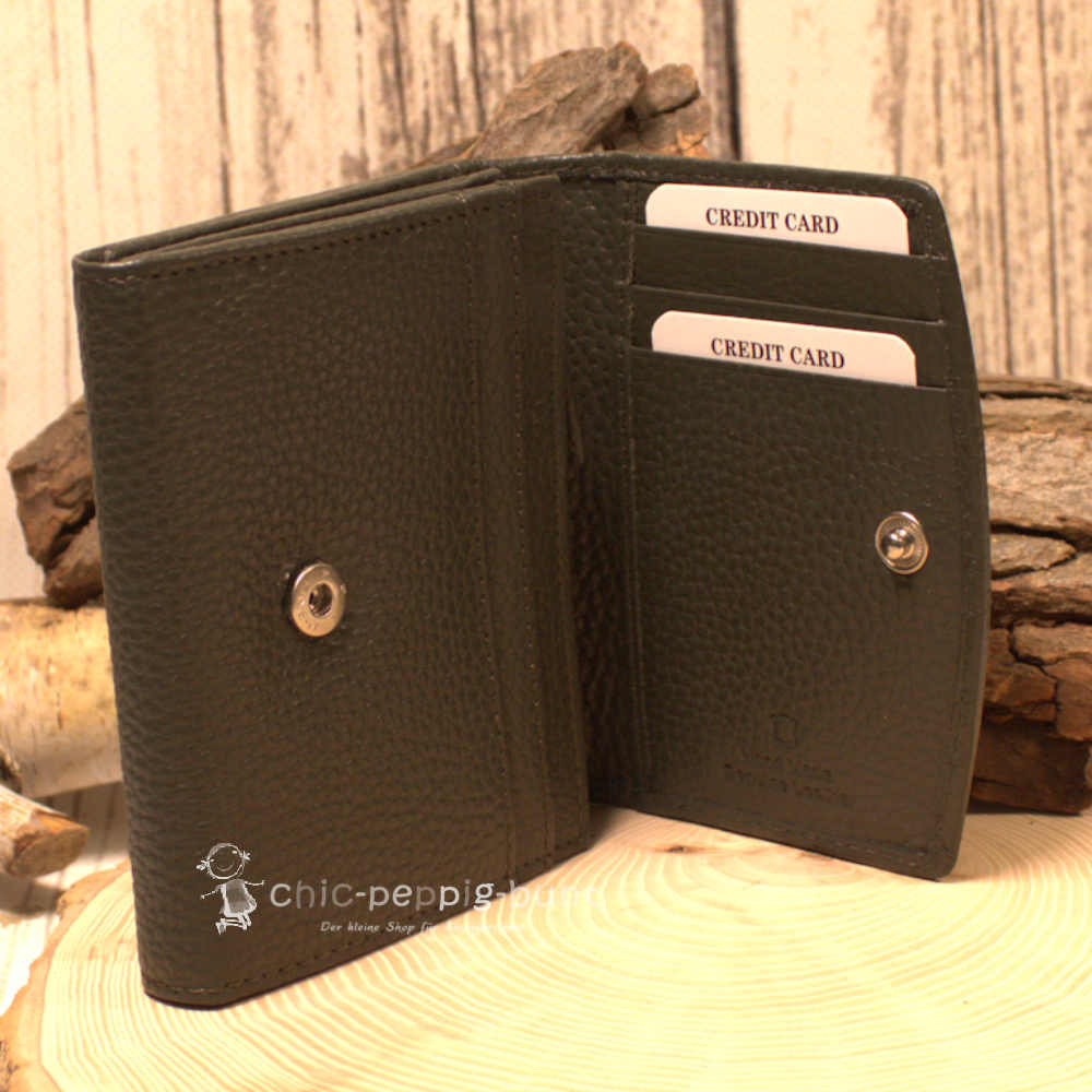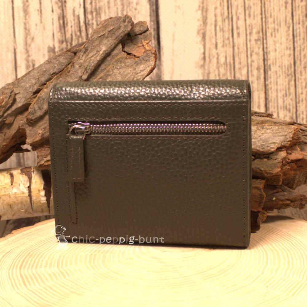 Kennen Sie das Gefühl, wenn Sie an der Kasse stehen und fieberhaft nach dem richtigen Kleingeld suchen müssen? Wir erklären diese peinliche Situation hiermit für beendet! Wir präsentieren Ihnen diese stilvolle Geldbörse aus hochwertigem Echtleder im edlen Dunkelgrün. Diese Farbe wirkt beruhigend und strahlt gleichzeitig eine besondere Eleganz aus. Dank des zeitlosen und neutralen Designs eignet sich dieses Leder-Portemonai perfekt als unisex Modell für alle Geschmäcker. Das robuste Material garantiert eine hohe Langlebigkeit im täglichen Gebrauch. Mit diesen Maßen passt Ihr neues Accessoire wirklich überall rein. Die Brieftasche ist nämlich nur 12 cm breit,10 cm hoch und 2,5 cm tief – ein echtes Platzwunder im kompakten Format!