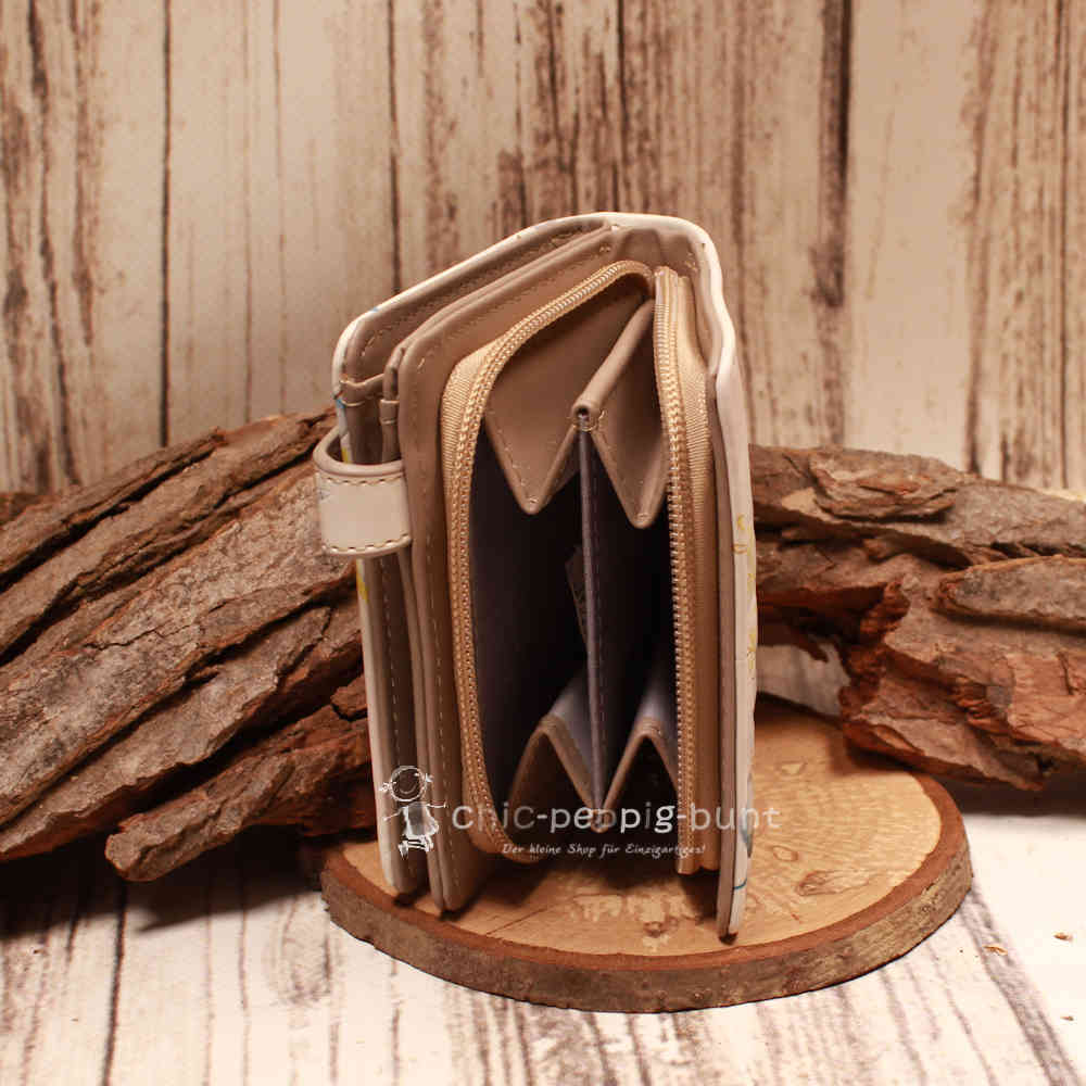 Unterschätzen Sie niemals die inneren Werte! Trotz der handlichen Maße von ca. 9 cm Breite, 11 cm Höhe und 3 cm Tiefe entpuppt sich dieser Geldbeutel als echtes Organisationstalent. Insgesamt neun durchdachte Fächer warten darauf, von Ihnen befüllt zu werden.