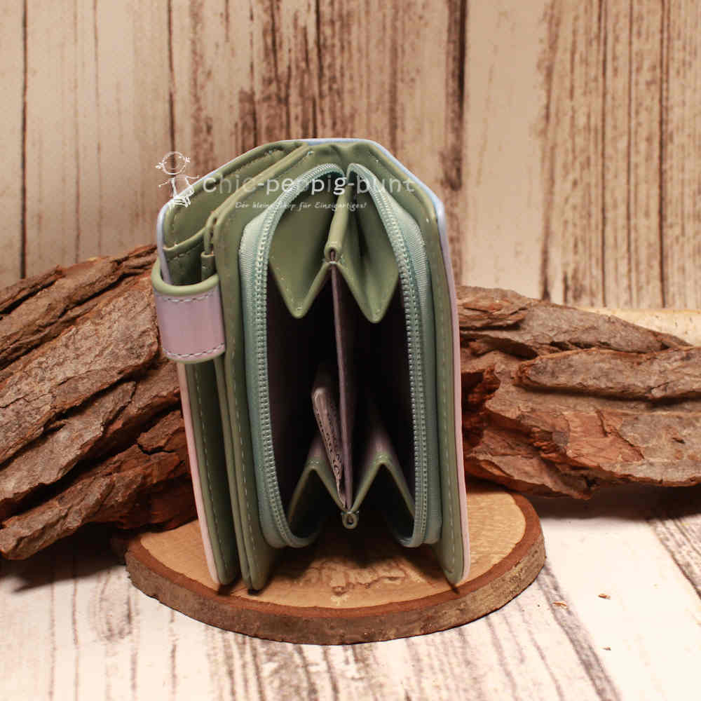 Lassen Sie sich von der kompakten Größe nicht täuschen! Mit seinen Maßen von ca. 9 cm Breite, 11 cm Höhe und 3 cm Tiefe passt dieses Portemonnaie in jede Handtasche, egal wie voll diese bereits ist. Im Inneren wurde jeder Millimeter klug genutzt, um Ihnen insgesamt 9 Fächer zu bieten.