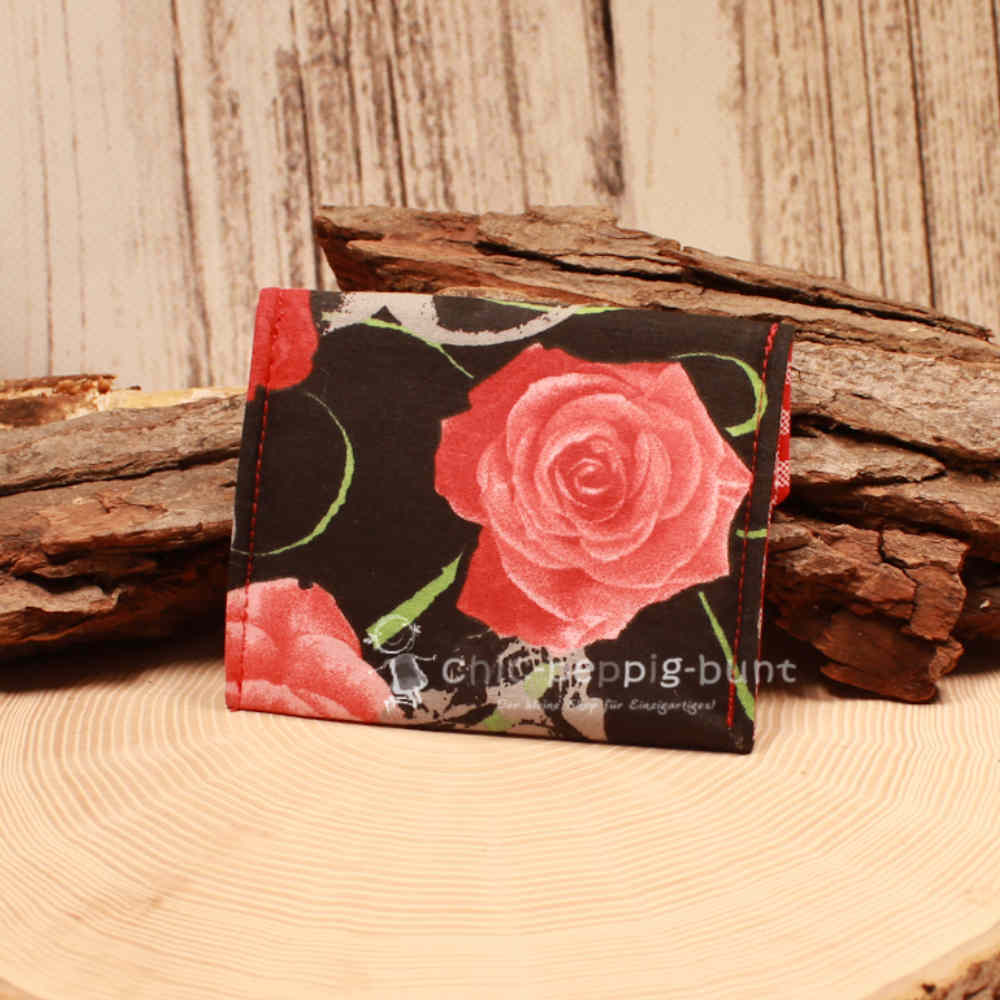 Wir lieben Kontraste, die sofort ins Auge springen und gute Laune verbreiten! Die Außenseite besticht durch einen hochwertigen schwarzen Stoff, auf dem rote Blumen für einen farbenfrohen Akzent sorgen. Dieses Design macht deine neue Münztasche zum absoluten Blickfang an jeder Kasse. Doch der eigentliche Clou wartet im Inneren: Wenn du den Beutel öffnest, begrüßt dich ein klassischer rot-weiß karierter Stoff. Ein robuster Kunststoffdruckknopf verschließt das Fach zuverlässig. So bleibt dein Erspartes genau dort, wo es hingehört – sicher verwahrt in deinem neuen Lieblingsstück.