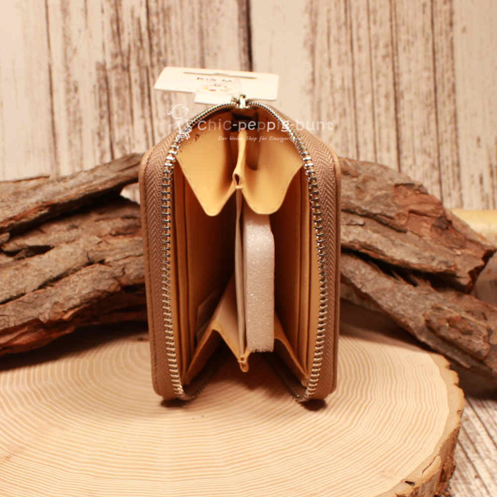 Ein stabiler, umlaufender Reißverschluss sichert den kompletten Inhalt. So fällt garantiert nichts heraus, selbst wenn der Kindergeldbeutel mal schwungvoll in den Rucksack geworfen wird. Die silberfarbenen Details des Zippers runden das edle Design perfekt ab.
