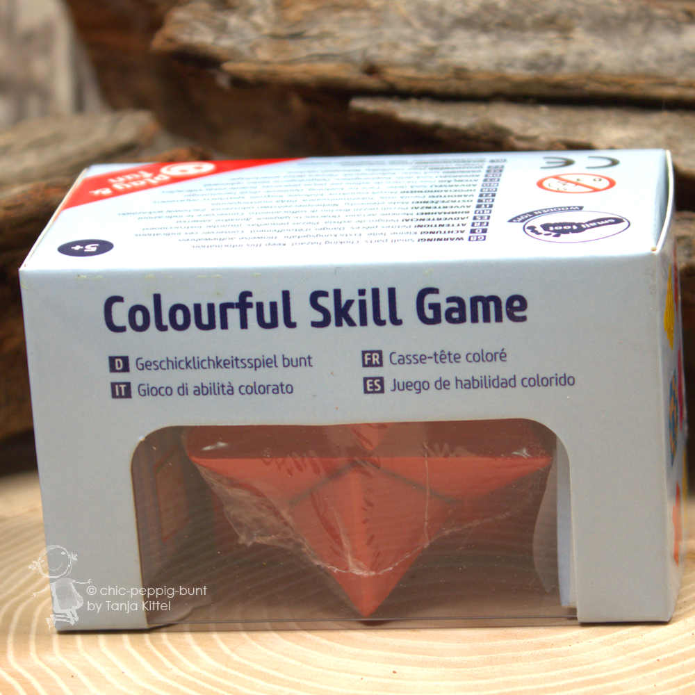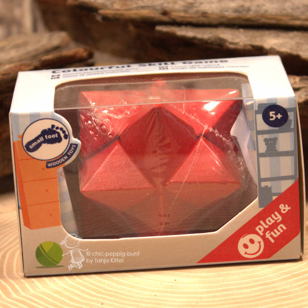 Dank der handlichen Masse passt dieses Geduldspiel in jede Tasche. Nehmen Sie die Challenge mit ins Büro, zum Treffen mit Freunden oder in den Urlaub. Die mitgelieferte Schachtel gewährleistet nicht nur einen sicheren Transport, sondern macht das Spiel auch zum Verkaufen als perfektes, kleines Geschenk attraktiv.
