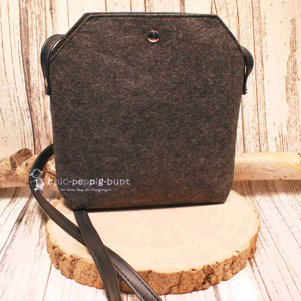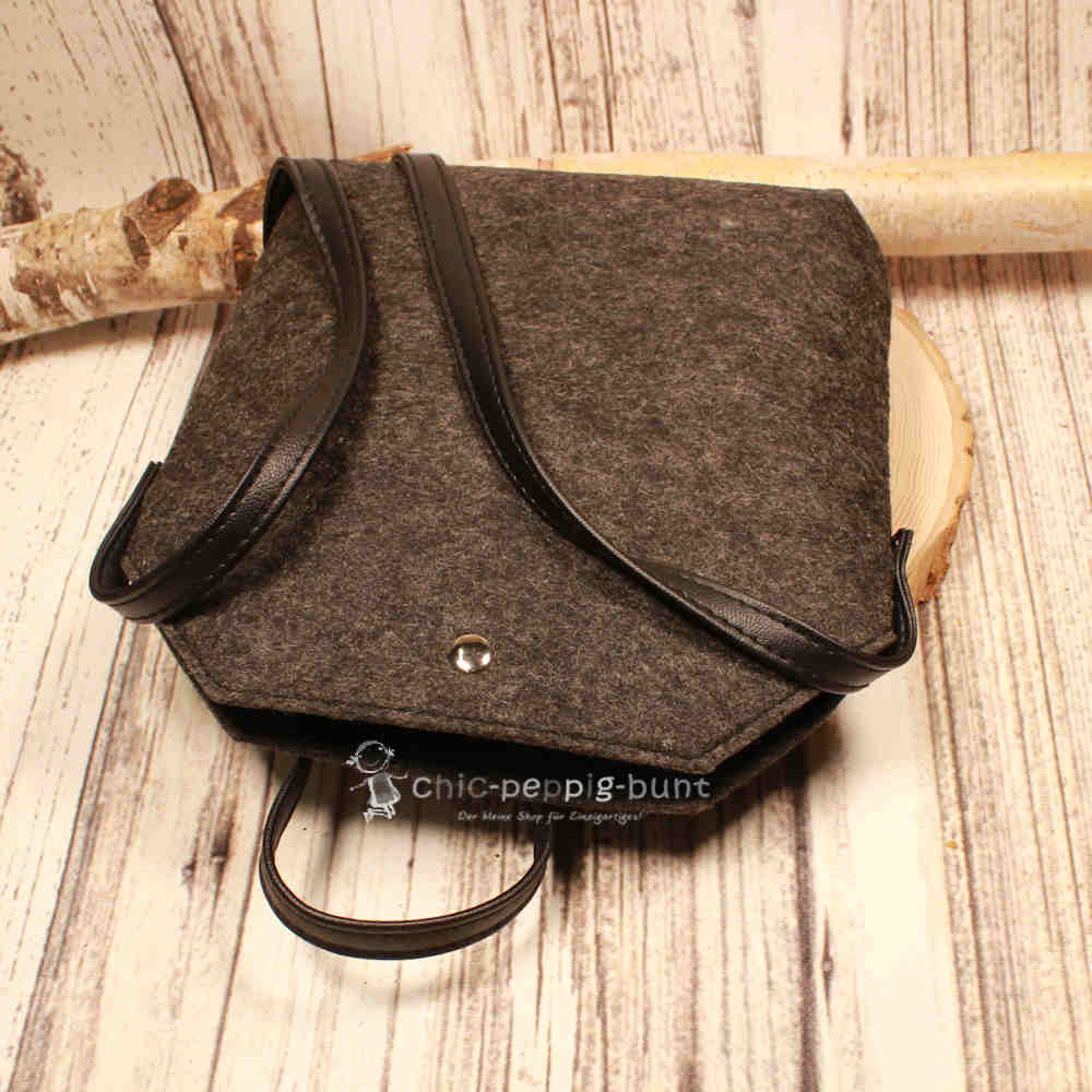 Material: Strapazierfähiger Filz in Dunkelgrau & echter Lederriemen