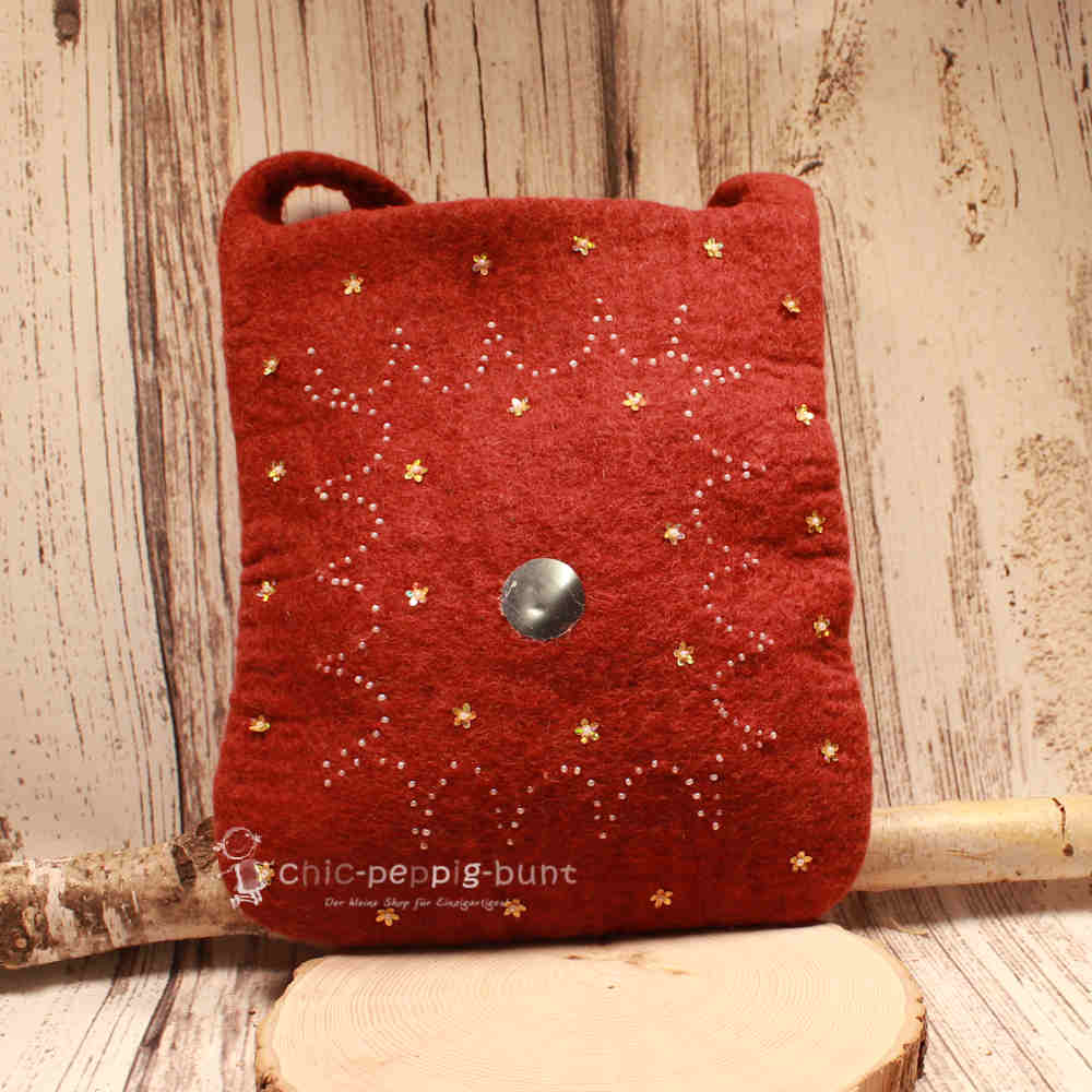 Bist du bereit, alle Blicke auf dich zu ziehen? Unsere rote Tasche aus hochwertigem Filz ist kein Accessoire für schüchterne Wandblümchen! Wir haben dieses Prachtstück für Frauen entworfen, die Farbe lieben und Wert auf echte Handarbeit legen. Das satte Rot strahlt pure Energie aus, während die filigrane Perlenbestickung für den nötigen Hauch von Luxus sorgt. Diese Umhängetasche ist dein perfekter Begleiter, wenn du ein Statement setzen willst – egal ob beim Stadtbummel oder beim Treffen mit deinen Mädels.