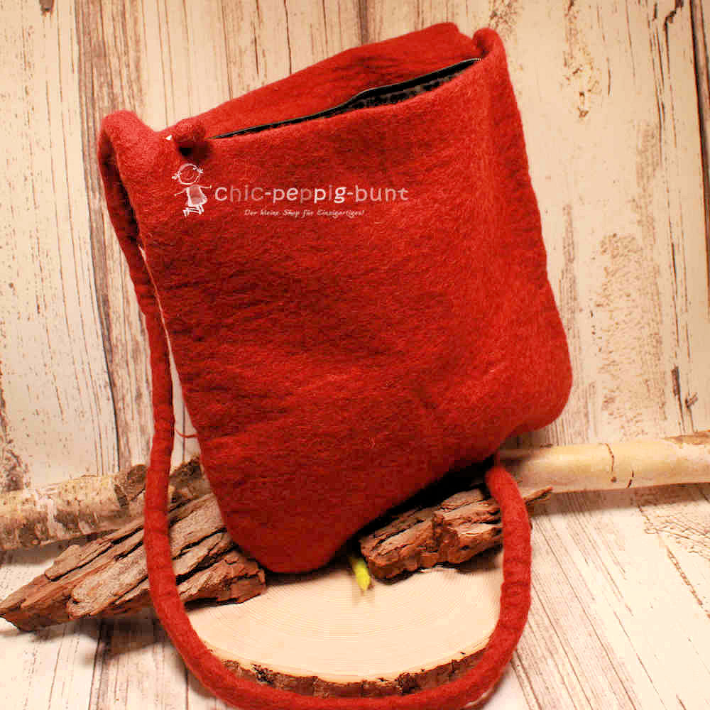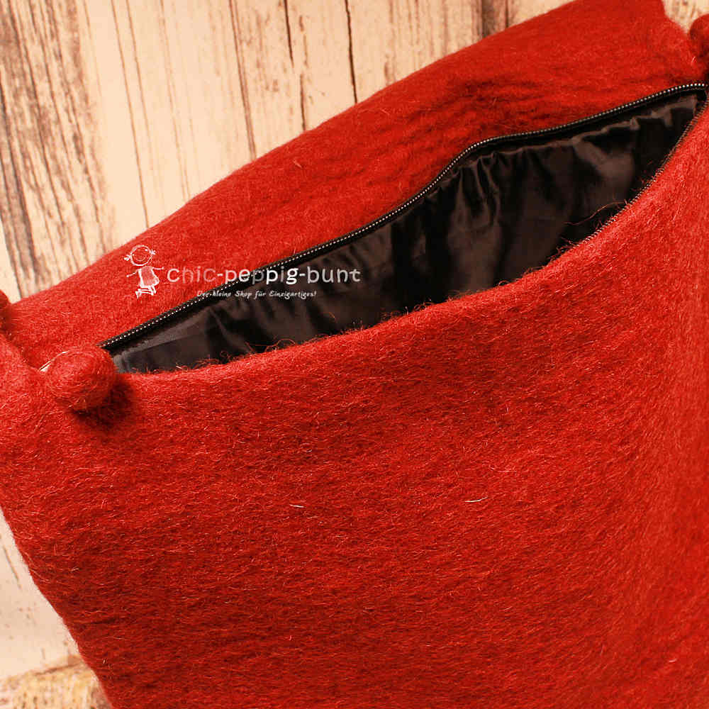 Wir wählen für diese Handtasche ein kräftiges Rot, das sofort Energie und Selbstbewusstsein ausstrahlt. Der hochwertige Filz bietet eine wunderbare Haptik und schützt den Tascheninhalt zuverlässig vor den kleinen Tücken des Alltags. Das Besondere versteckt sich jedoch unter dem Deckel: Ein edles, schwarzes Innenfutter kleidet das Hauptfach aus und sorgt dafür, dass deine Essentials sanft gebettet sind. Der Kontrast zwischen dem feurigen Rot außen und dem tiefen Schwarz innen verleiht der Tasche eine exklusive Optik.