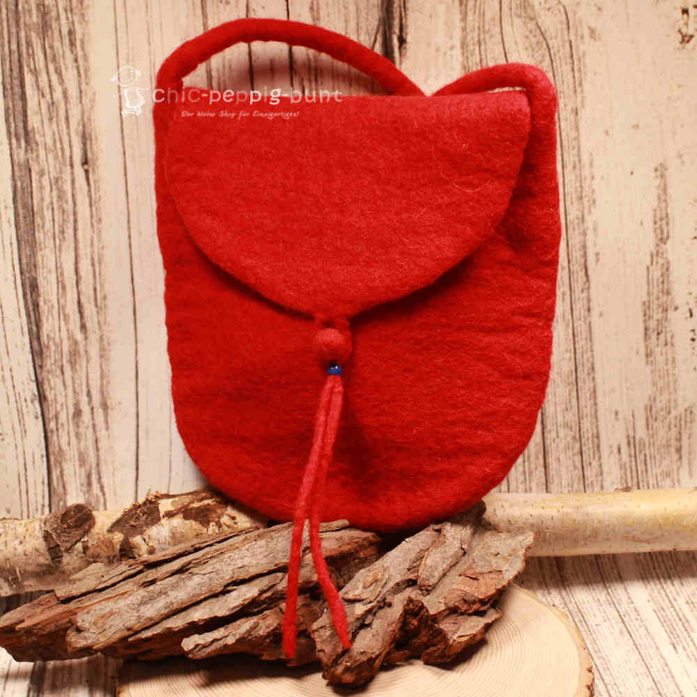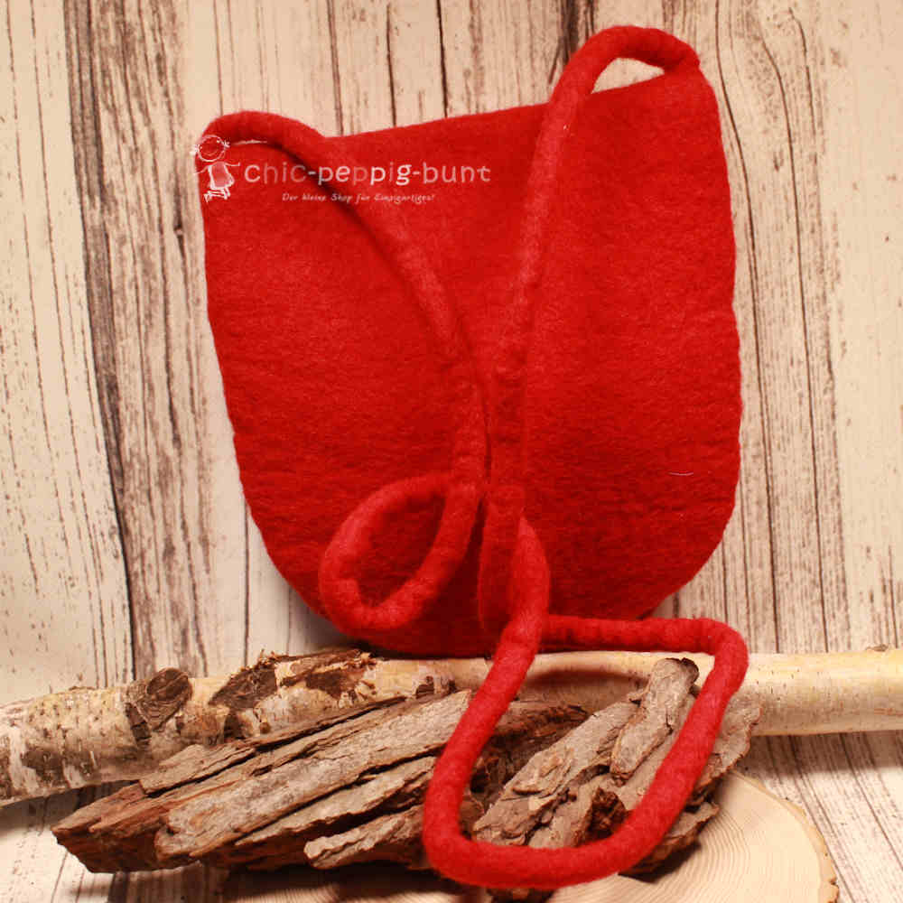 Wir fertigen diese Handtasche aus hochwertigem, formstabilem Filz. Die Farbe Rot verleiht der Tasche eine enorme Energie, die wunderbar mit dunklen Outfits oder sommerlichen Looks harmoniert. Filz überzeugt uns immer wieder als echtes Naturtalent: Er ist federleicht, strapazierfähig und fühlt sich haptisch einfach fantastisch an. Du trägst also nicht nur ein Accessoire, sondern ein echtes Stück Lebensfreude mit dir herum.