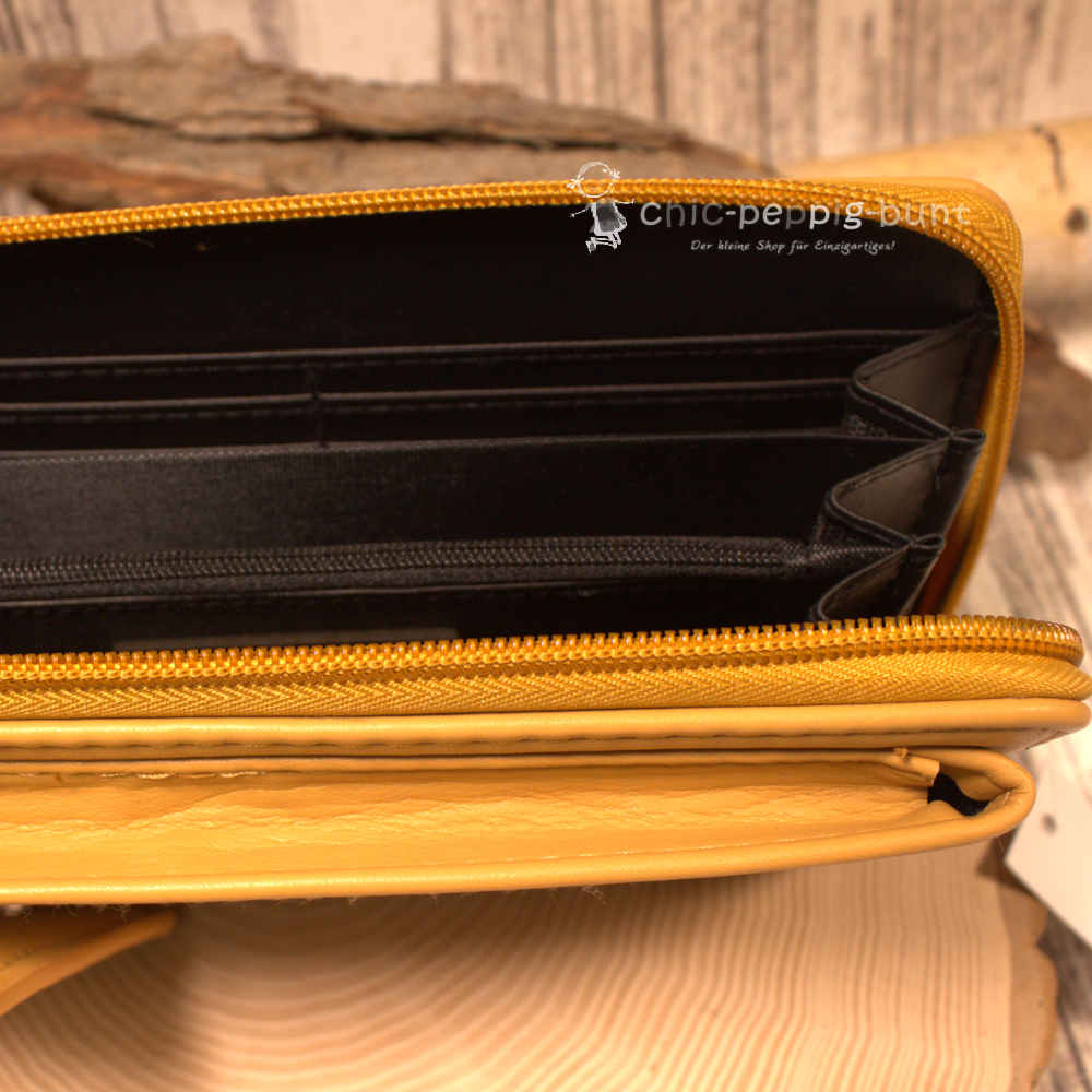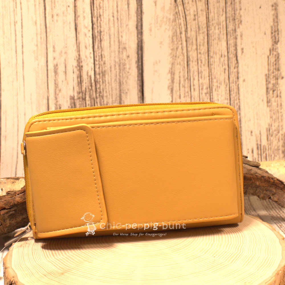 Die ocker-gelbe Geldbörse ist ein echtes Statement-Piece, das Organisationstalent und modisches Flair perfekt vereint.