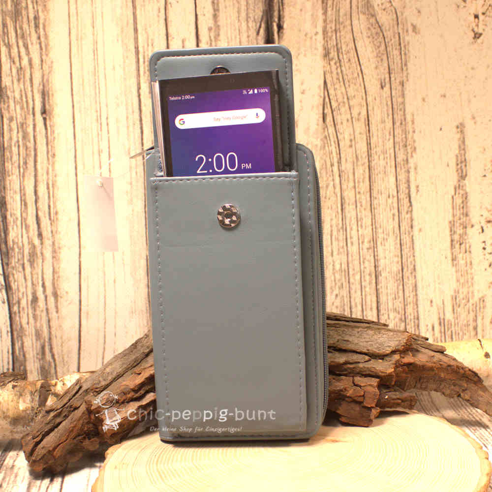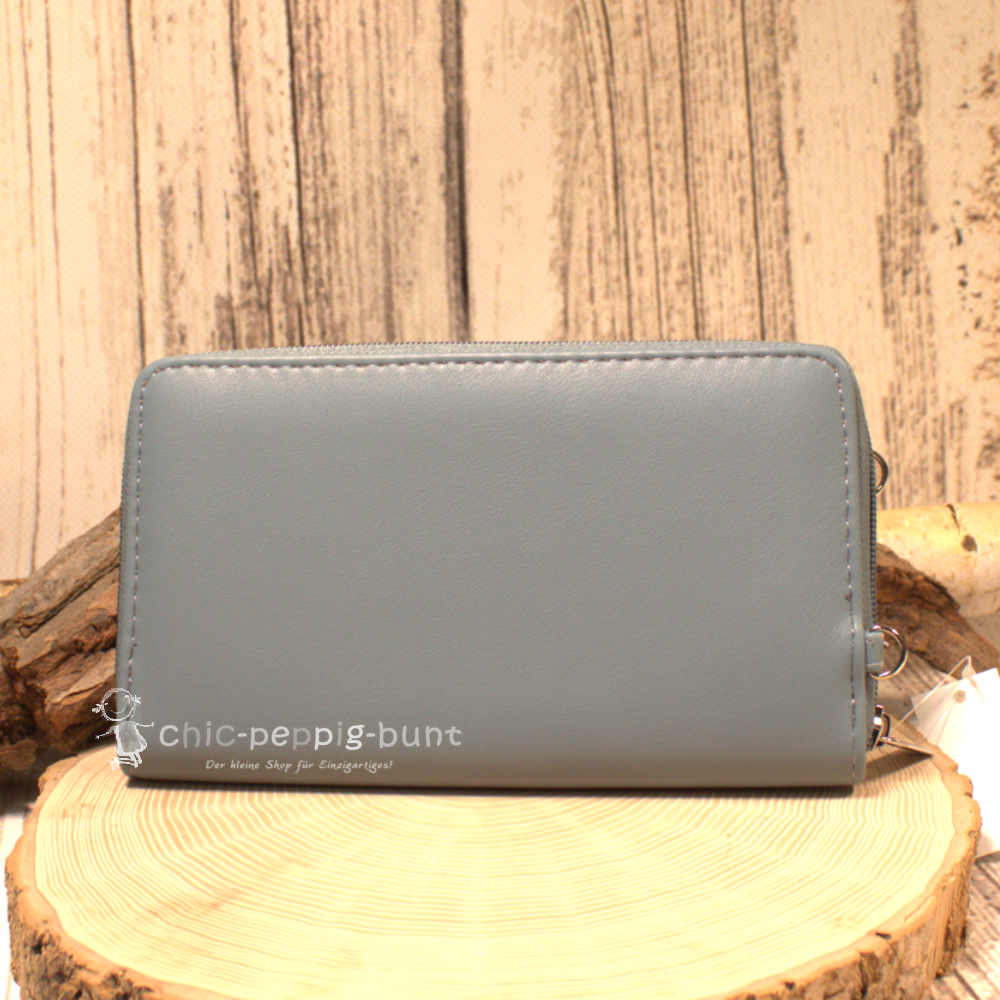 Entdecken Sie unseren praktischen und stilvollen Begleiter in einem zeitlosen und vielseitigen Grau. Diese große Geldbörse im Hochformat bietet nicht nur Platz für Ihr gesamtes Bargeld und Ihre Karten, sondern fungiert dank des integrierten Handyfachs auch als schicke Mini-Handtasche oder Clutch.