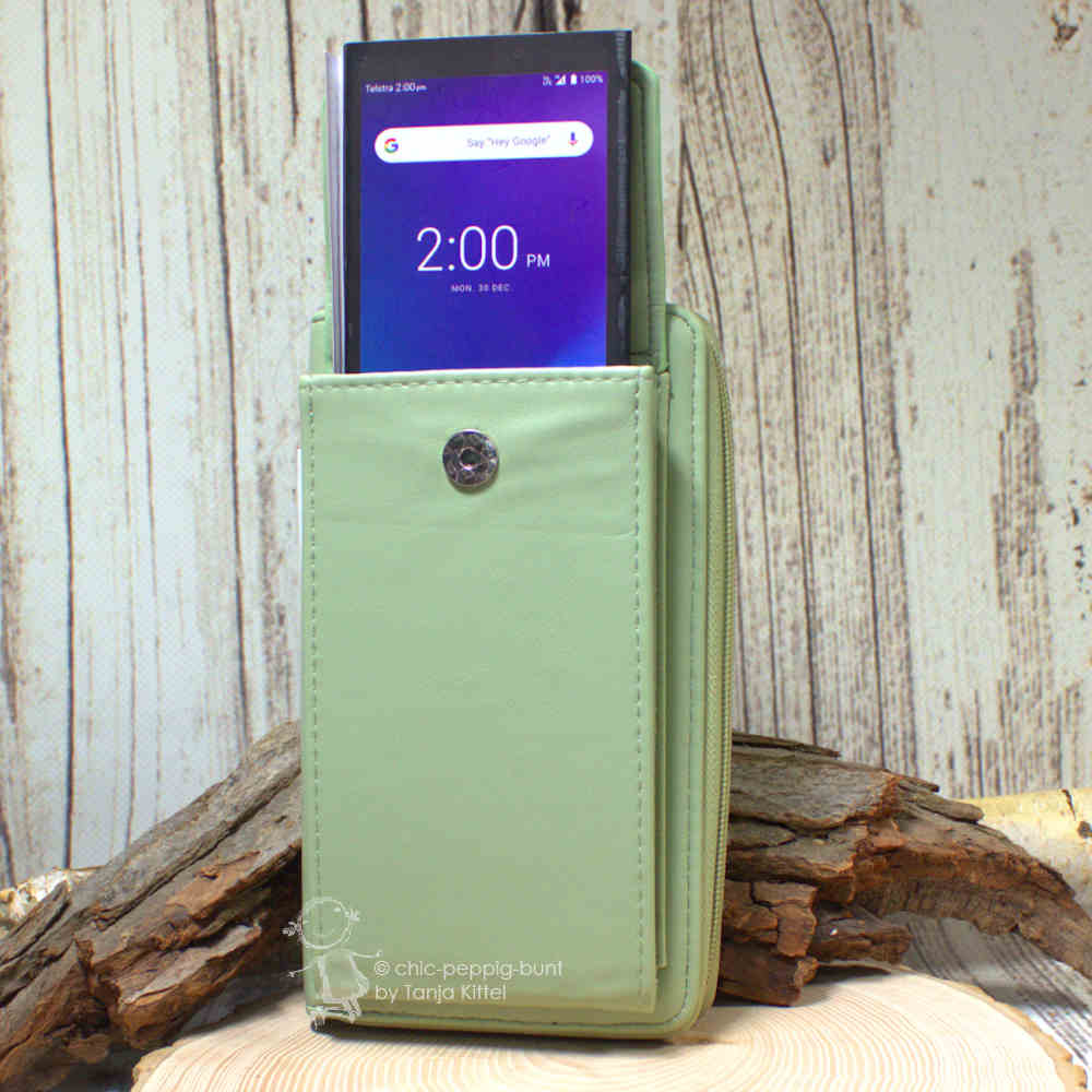 - 1 langes Fach für ihr Handy mit Druckknopf