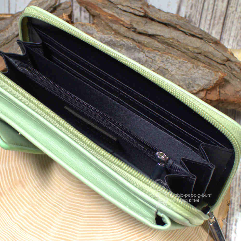 Zusätzlich finden Sie im Hauptfach 6 lange Fächer für Geldscheine, Ausweis etc. – endlich haben auch Ihre Belege einen festen Platz! Wichtig: Der gesamte Geldbeutel wird zuverlässig mit einem Reißverschluss verschlossen, sodass Ihre Wertsachen maximal gesichert sind. Kleingeld bewahren Sie in einem separaten Fach mit Reißverschluss für Kleingeld auf. Die Trennwände sind stabil und halten auch volle Fächer in Form. Das macht diesen Geldbeutel nicht nur praktisch, sondern auch langlebig.