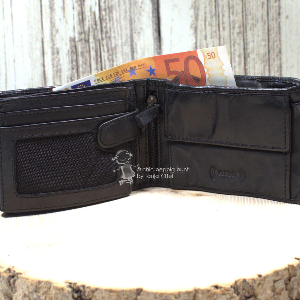 2 Geldscheinfächer: Zwei geräumige Fächer nutzen Sie für die Aufbewahrung von Banknoten. So trennen Sie spielend leicht Euro und Fremdwährung oder große und kleine Scheine.