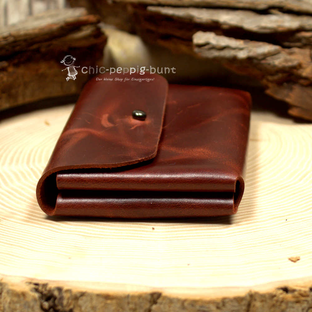 Haben Sie genug von dicken, unübersichtlichen Brieftaschen, aber benötigen trotzdem etwas mehr Platz als im 1-Fach-Etui? Wir präsentieren Ihnen die ideale Lösung: Dieses elegante Kartenetui aus braunem, marmoriertem Hochglanz-Leder! Es wurde in sorgfältiger Handarbeit hergestellt und besticht durch seine einzigartige Optik. Das glänzende Finish und das lebhafte Leder sorgen für einen luxuriösen Look. Dieses Etui ist nicht nur ein Businesscard Holder, es ist der Beweis, dass Organisation auch wunderschön sein kann.