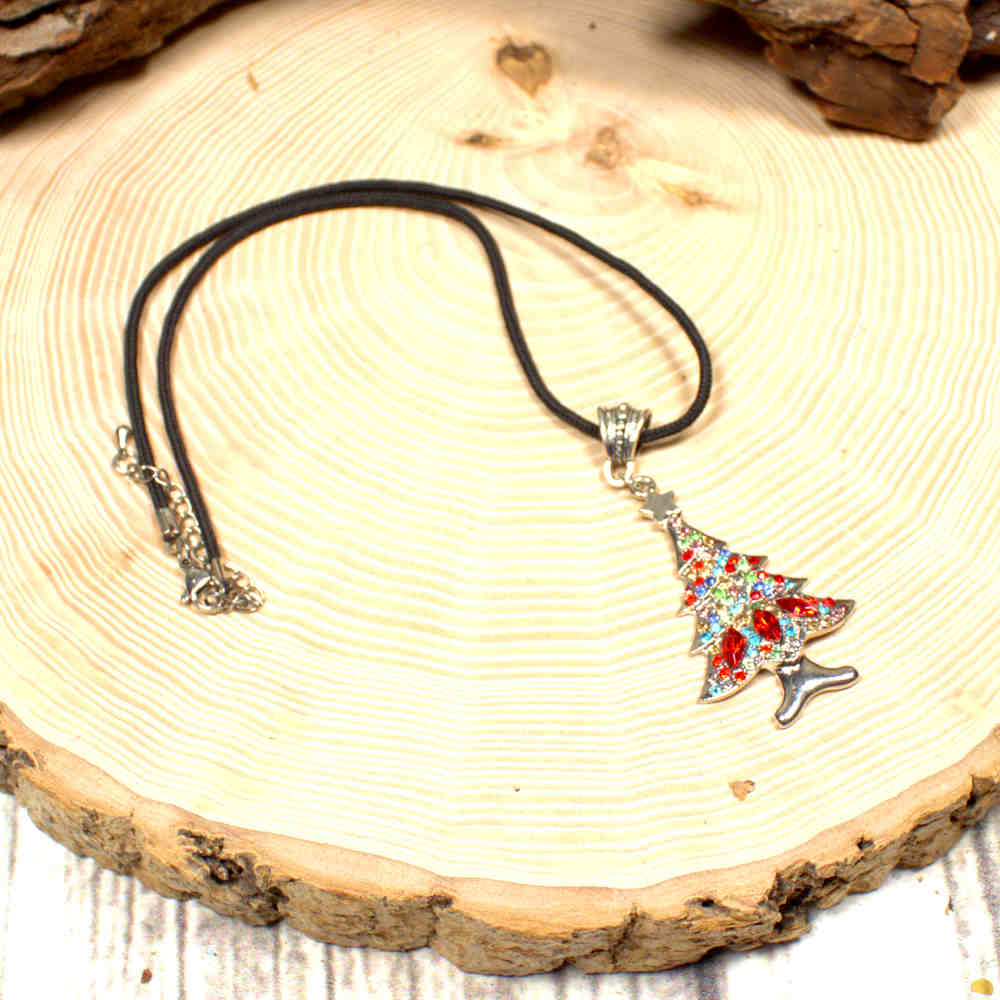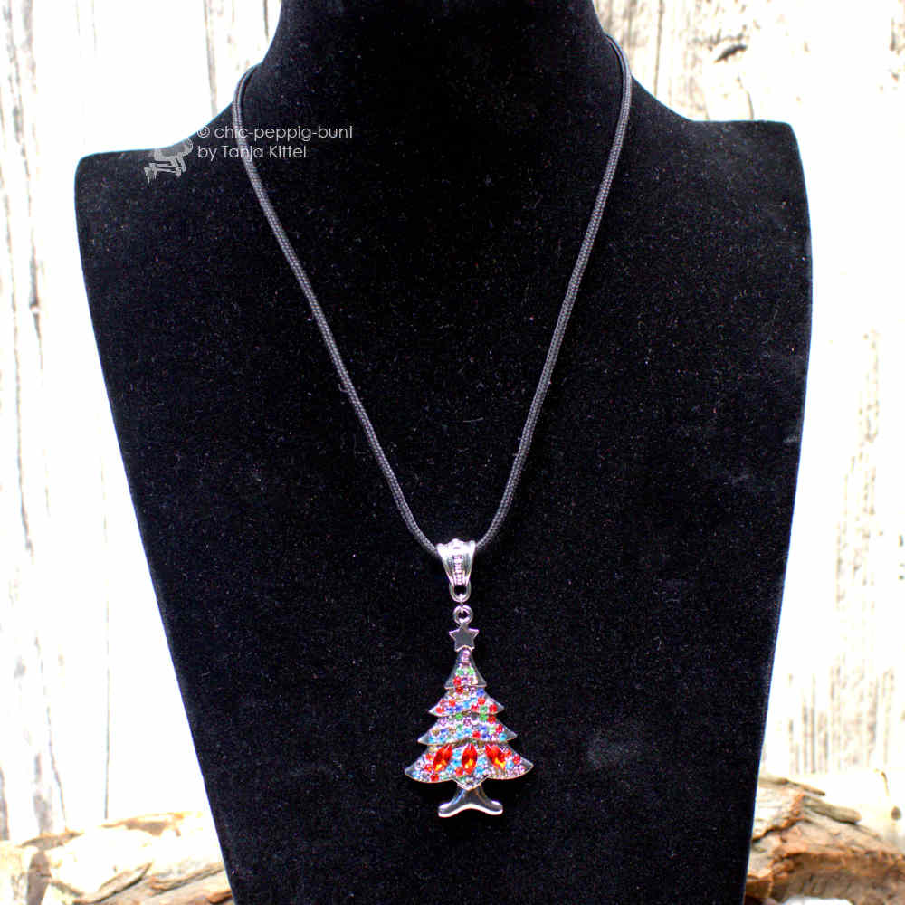Lässig trifft Luxus: Die Halskette mit Strass-Christbaum