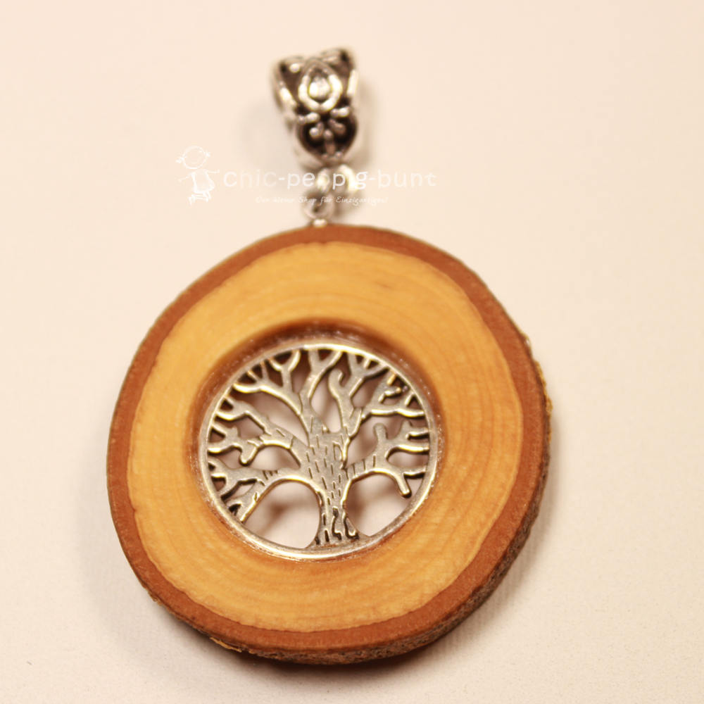 Gehören Sie auch zu den Menschen, die im Wald jeden Baum freundlich grüßen? Wir verstehen das vollkommen, aber wir gehen noch einen Schritt weiter. Warum sollten Sie die Natur nur im Wald genießen, wenn Sie ein echtes Stück Wildnis auch bequem um den Hals tragen können? Unser neuer Kettenanhänger aus einer echten Holzscheibe der Vogelbeere bringt rustikale Eleganz direkt in Ihren Alltag. Dieser Modeschmuck beweist eindrucksvoll, dass Mutter Natur immer noch die besten Designer engagiert. Wir fertigen jedes einzelne Stück mit viel Herzblut in unserer kleinen Werkstatt an. Das Label handmade durch chic-peppig-bunt steht dabei für Schmuckstücke, die eine Seele besitzen und Ihre Persönlichkeit perfekt unterstreichen.