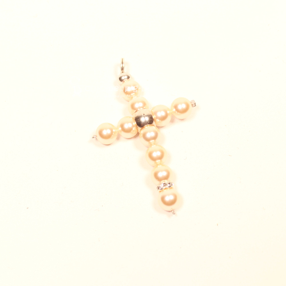 Suchen Sie noch nach dem einen Schmuckstück, das Ihr Outfit von „ganz nett“ in „absolut göttlich“ verwandelt? Dann beenden Sie jetzt Ihre Suche! Unser handgefertigter Kettenanhänger in Kreuzform ist kein dezentes Accessoire für Mauerblümchen. Wer sagt denn, dass Klassiker immer langweilig sein müssen? Wir von „chic-peppig-bunt“ finden: Ein Kreuz darf auffallen, funkeln und eine ordentliche Portion Selbstbewusstsein ausstrahlen! Dieser Schmuckanhänger kombiniert die traditionelle Form des Kreuzes mit dem edlen Perlmutt-Look cremefarbener Polarisperlen.