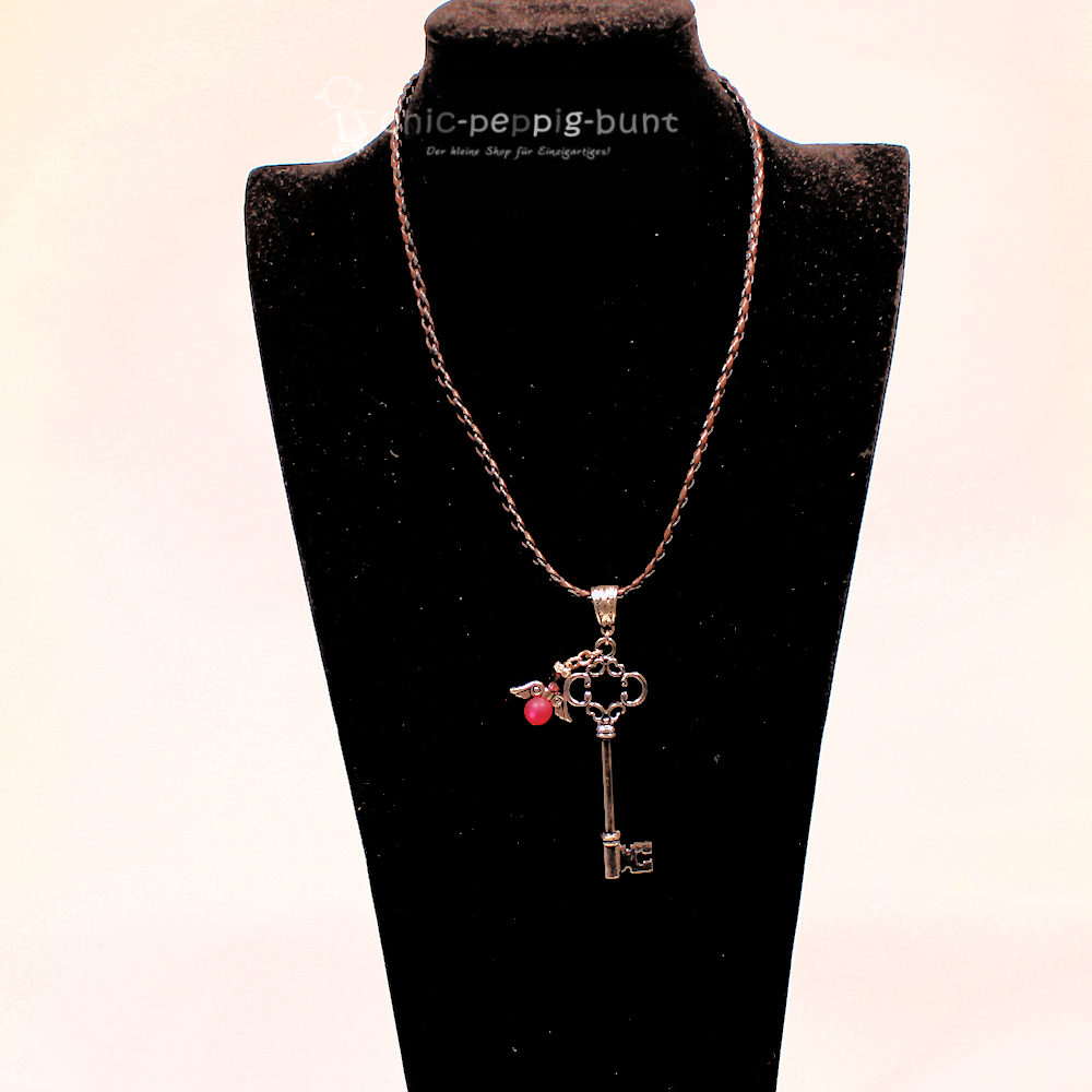 Jeder Anhänger entsteht mit viel Liebe zum Detail in unserer Werkstatt unter dem Label „chic-peppig-bunt“. Das bedeutet für dich: Du kaufst kein industrielles Massenprodukt, sondern echte Handarbeit mit einer Prise Magie. Ein kleiner Teil der Produktion wird von uns noch ganz traditionell durchgeführt, um die hohe Qualität zu sichern. Das kräftige Pink der Perle bildet einen fantastischen Kontrast zur glänzenden, versilberten Oberfläche des Schlüssels.