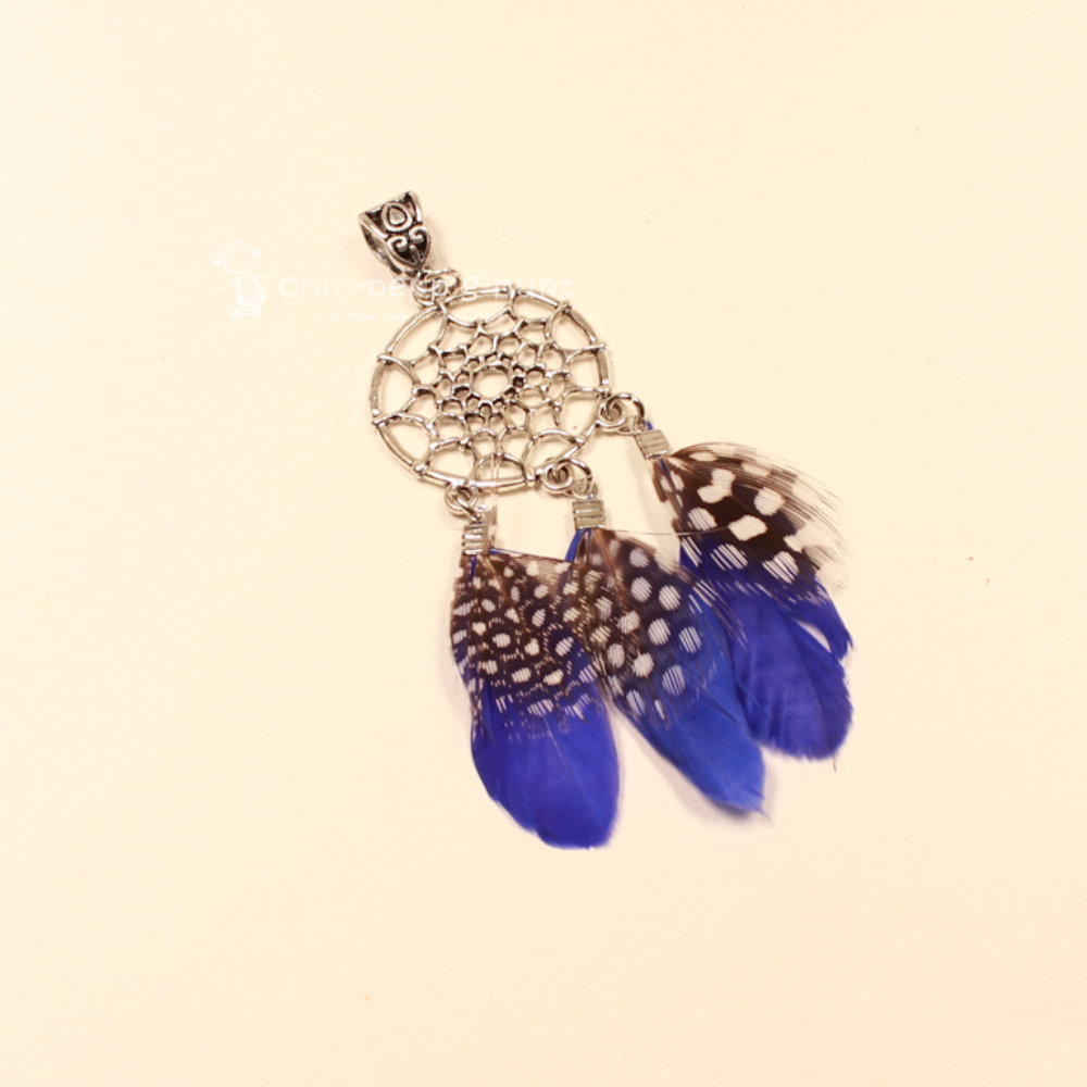 Bist du bereit, modische Flauten endgültig zu vertreiben? Unser versilberter Kettenanhänger im Traumfänger-Design sieht nicht nur unverschämt gut aus, sondern fungiert auch als dein persönlicher Bodyguard für erstklassigen Stil. Wer sagt denn, dass Traumfänger nur nachts über dem Bett arbeiten dürfen? Dieser Anhänger macht auch am helllichten Tag einen verdammt guten Job und fängt statt schlechter Träume lieber bewundernde Blicke deiner Mitmenschen ein. Wir mixen hier kühle Versilberung mit leuchtend blauen Federn – eine Kombination, die so erfrischend wirkt wie eine Brise am Meer.