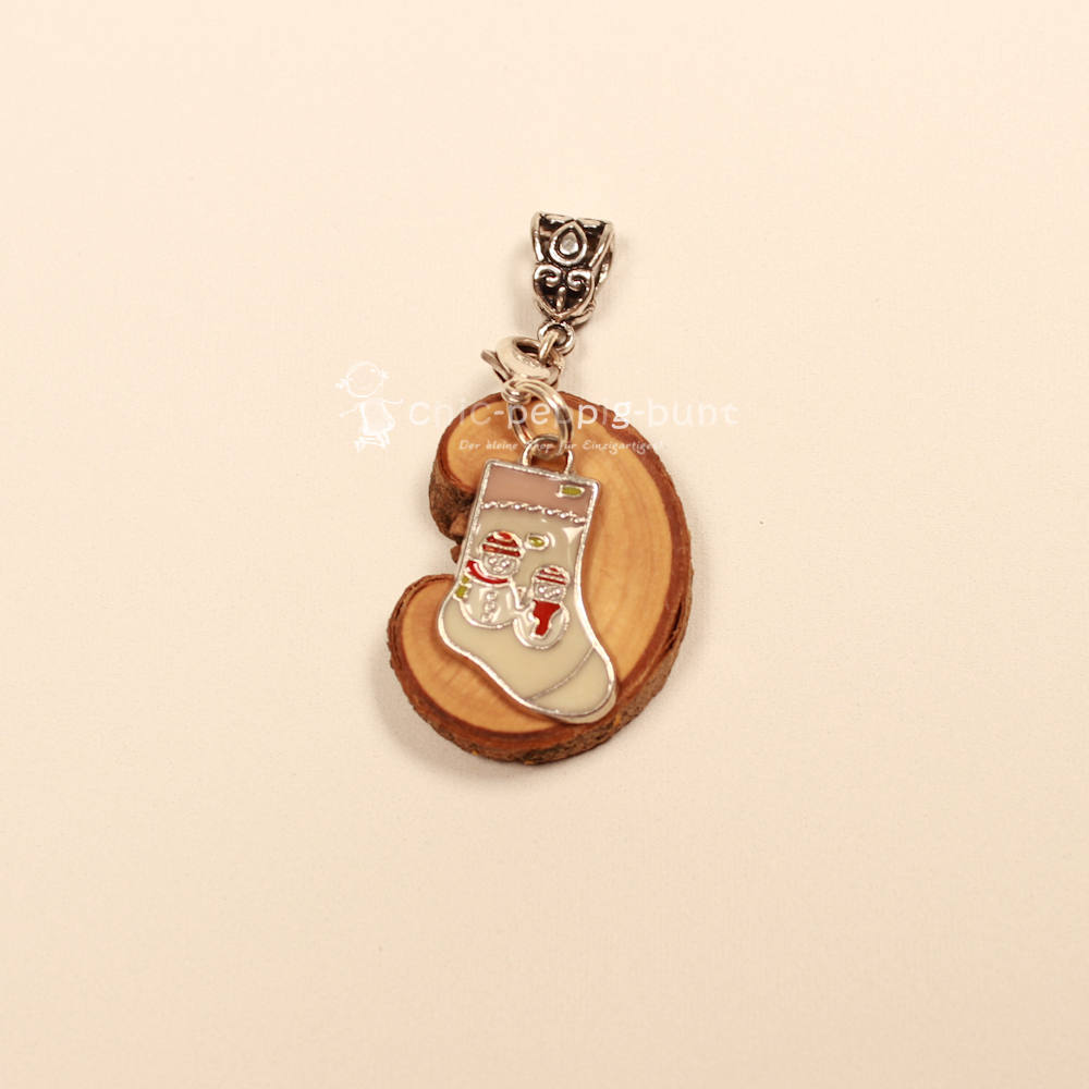 Der eigentliche Star ist der kleine, liebevoll gearbeitete Nikolausstrumpf (Socke), der mittig auf der Holzscheibe platziert ist. Er wollte zwar eigentlich an den Kamin, aber er macht sich auch als Kettenanhänger fantastisch! Wir achteten bei der Gestaltung der Socke auf feine Details, die die festliche Atmosphäre unterstreichen. Jeder Kettenanhänger wurde in sorgfältiger Handarbeit (handmade durch chic-peppig-bunt) gefertigt. Diese Handarbeit garantiert Ihnen ein hochwertiges und individuelles Accessoire, das Sie lange begleiten wird. Die robuste Schluppe ermöglicht eine sichere Befestigung an jeder Kette und sorgt dafür, dass der Anhänger stabil sitzt.