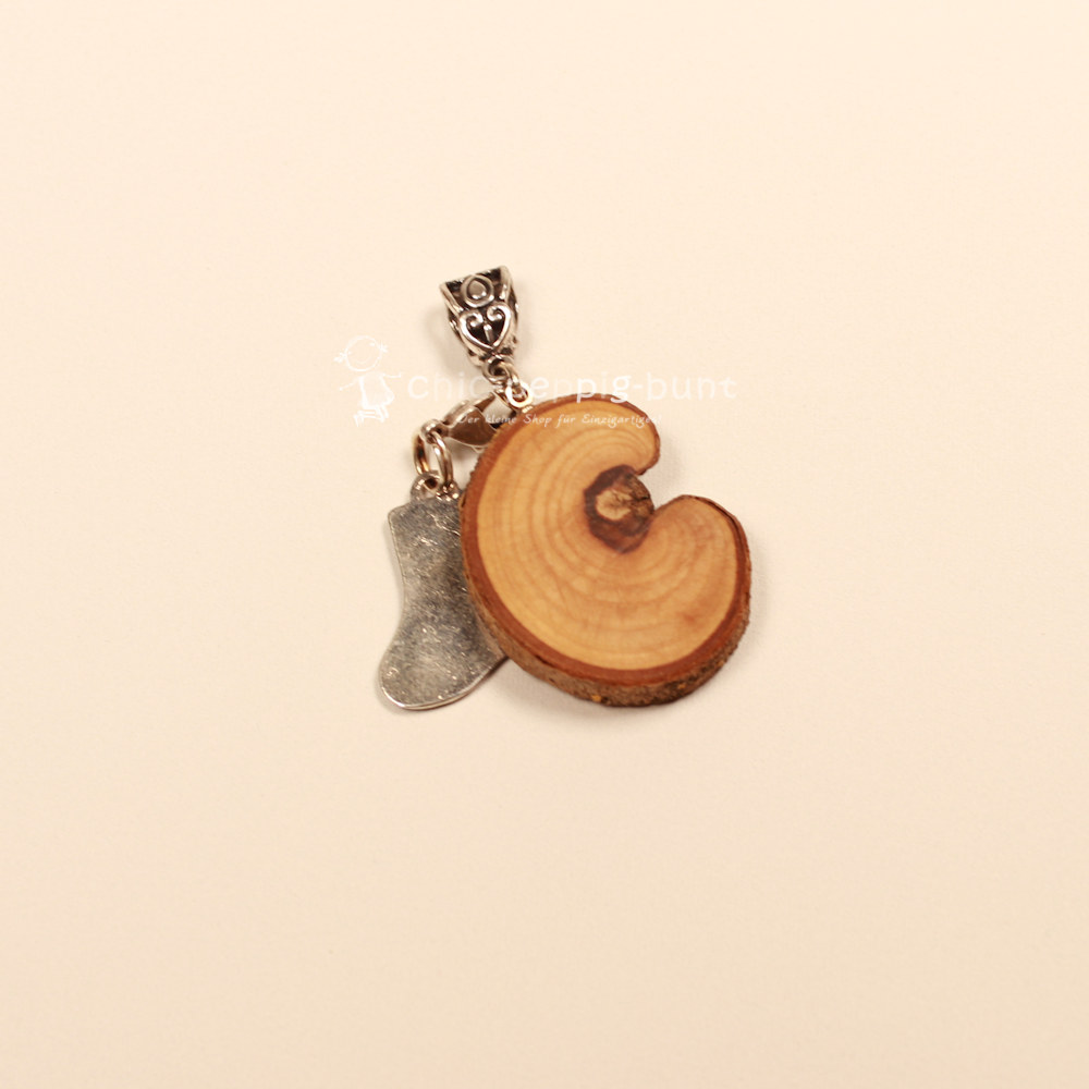 Möchten Sie zu Weihnachten einen Anhänger tragen, der sowohl rustikalen Charme als auch festliche Stimmung verbreitet? Wir präsentieren Ihnen unseren einzigartigen Kettenanhänger mit einer echten Holzscheibe als Basis. Die Scheibe zeigt die natürliche Maserung des Holzes, was jedes Stück zu einem Unikat macht. Wir kombinierten diese Natürlichkeit mit einem verspielten Nikolausstrumpf – dem perfekten Symbol für die Vorfreude auf die Geschenke. Die Kombination aus dem warmen Holz und dem festlichen Motiv schafft einen einzigartigen Modeschmuck, der Sie zum Blickfang macht. Zeigen Sie Ihren Geschmack für handmade und nachhaltig inspirierte Accessoires!