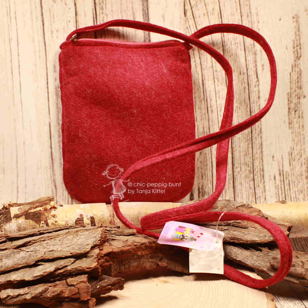 Ein besonderes Highlight stellt das integrierte Schulterband dar. Wir verwenden hier keine kratzigen Kordeln oder harten Kunststoff, sondern fertigen das Band direkt aus dem gleichen weichen Filzmaterial wie die Tasche selbst. Mit einer Länge von 119 cm bietet das Band ausreichend Spielraum für unterschiedliche Körpergrößen. Die Tasche wird entweder ganz klassisch über einer Schulter oder lässig als Cross-Body-Variante quer über der Brust getragen. So bleibt die kleine Handtasche immer genau dort, wo sie sein soll. Der Filz schmiegt sich sanft an die Kleidung an und verhindert unangenehmes Einschneiden an der Schulter.