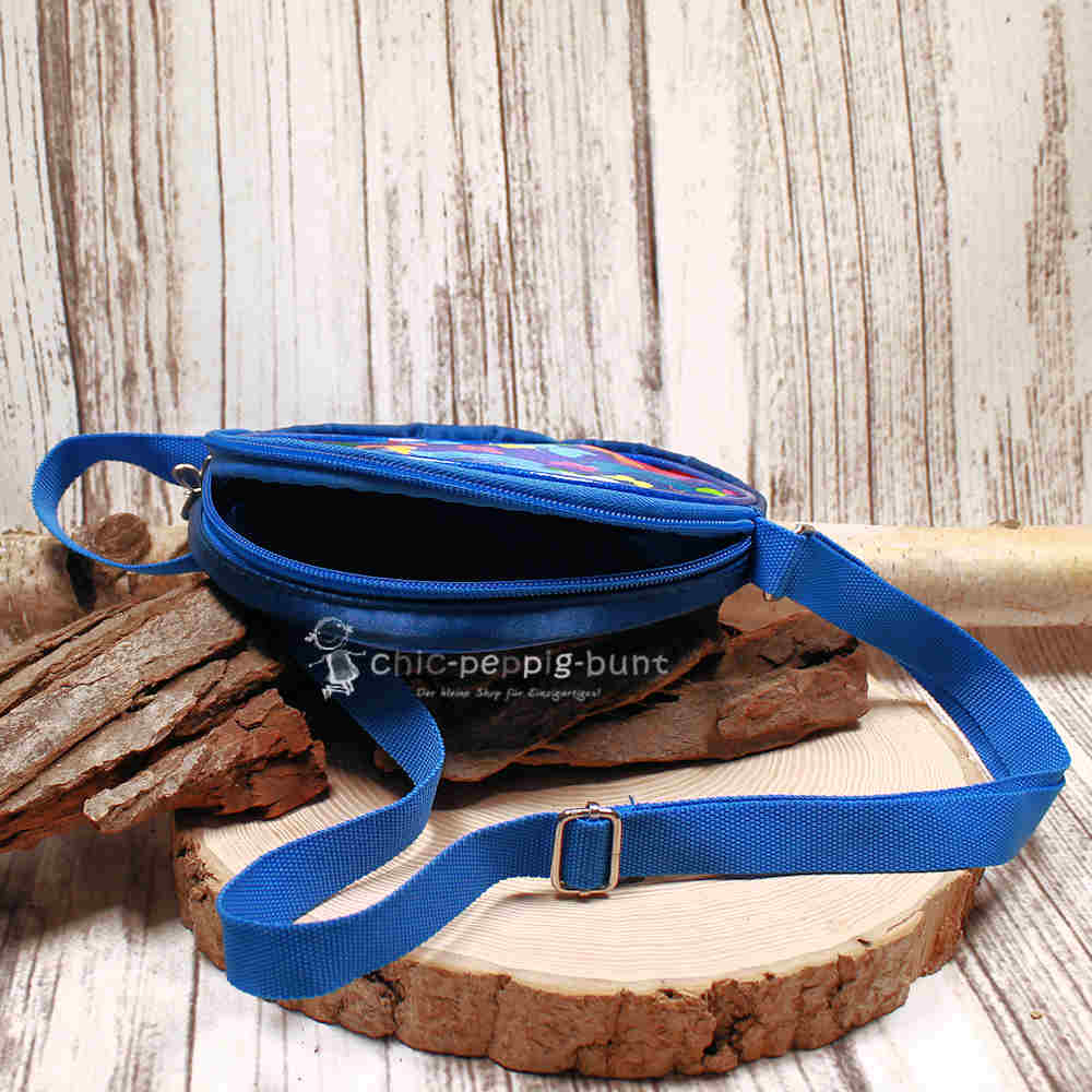 Wer möchte nicht gerne so frei wie ein Schmetterling durch die Welt flattern? Unser leuchtendes Schmetterling-Motiv auf der Vorderseite dieser Tasche macht genau das möglich. Wir platzieren das verspielte Design auf einen kräftigen blauen Hintergrund, der sofort alle Blicke auf sich zieht. Diese Umhängetasche fungiert nicht nur als praktischer Beutel, sondern auch als echtes modisches Statement für kleine Fashion-Fans. Wir fertigen die Tasche aus 100% Polyester, was sie besonders widerstandsfähig macht. Ob beim Klettern oder Toben – dieser Schmetterling bleibt stets an der Seite deines Kindes und macht jedes Abenteuer mit!