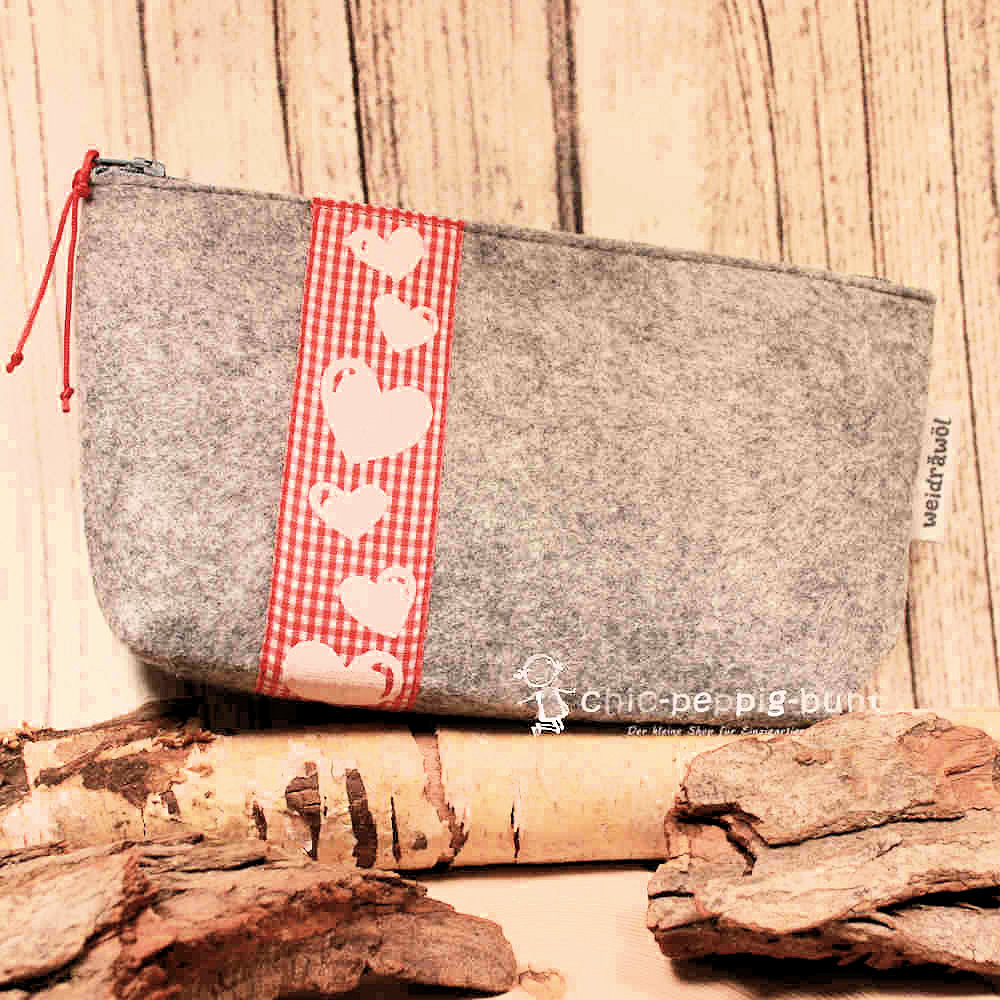 Nutze diese Tasche als klassische Kulturtasche, als stylisches Etui für deine Schreibwaren oder als praktische Kabeltasche im Büro. Suchst du ein Geschenk mit Herz für die beste Freundin, die Mama oder eine liebe Kollegin? Mit einem handgefertigten Produkt von weidräwöl landest du garantiert einen Volltreffer. Du verschenkst damit nicht nur Ordnung, sondern auch ein echtes Stück Lebensfreude. Gönn dir diesen hellgrauen Herzensbrecher und bringe Ordnung in deinen Alltag!
