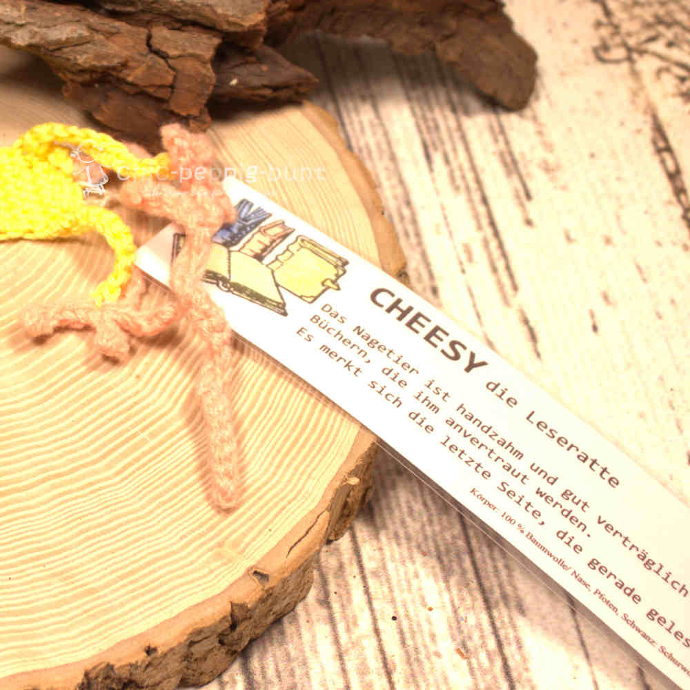 Lesezeichen/Leseratte Namens Cheesy gelb gehäkelt