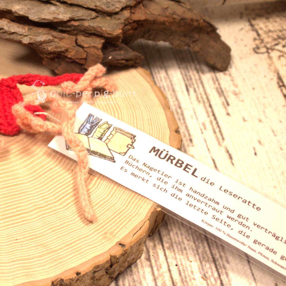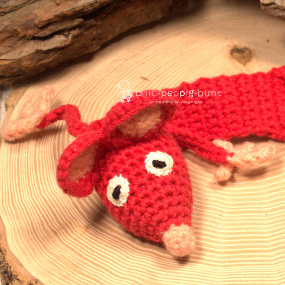 Lesezeichen/Leseratte Namens Mürbel rot gehäkelt