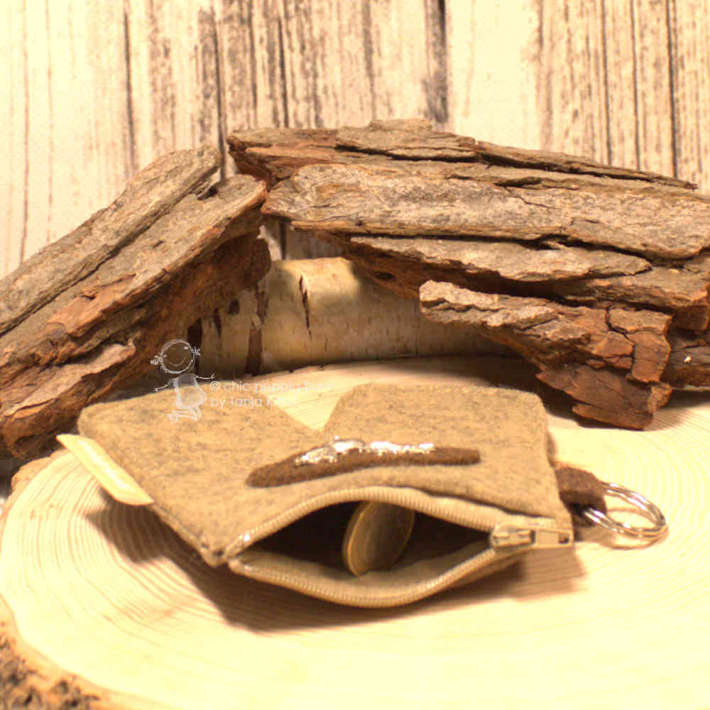 Trachten-Geldtasche / Mäppchen aus Filz in Beige-Braun – Rustikaler Chic mit Herz und Hirsch