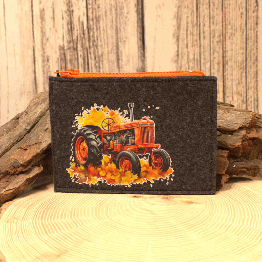 Du suchst ein Accessoire, das aus der Masse heraussticht? Mit diesem handgenähten Mäppchen der Firma weidräwöl findest du ein echtes Unikat. Jedes Stück entsteht in sorgfältiger Handarbeit in Deutschland und erzählt seine eigene kleine Geschichte. Man fühlt die Präzision und Liebe zum Detail, die in jeder Naht steckt. Das Motiv mit dem lustigen Traktor ist nicht aufgedruckt, sondern wurde auf den Filz aufgepresst. So stellen wir sicher, dass es langlebig ist und auch bei täglichem Gebrauch seine charmante Optik behält. Kaufe dieses Mäppchen und unterstütze das traditionelle deutsche Handwerk.