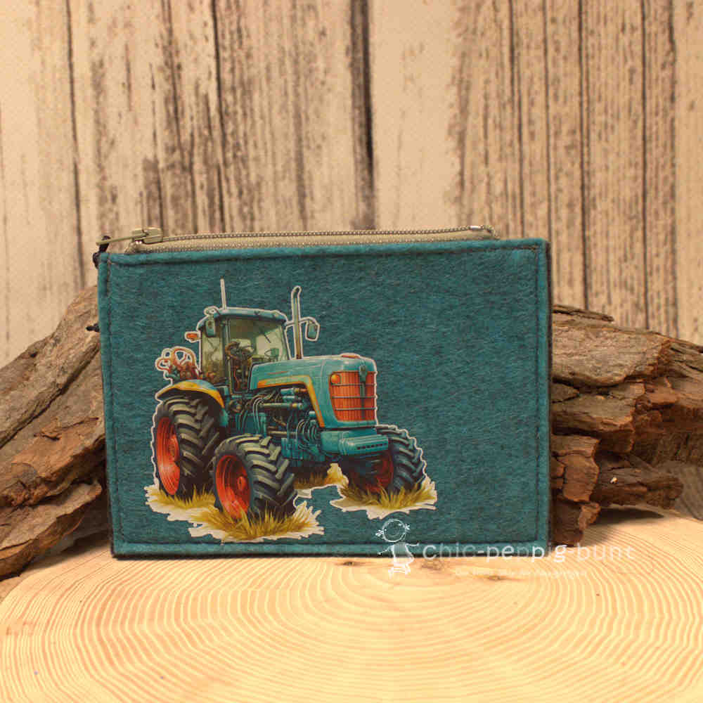 Du suchst ein Accessoire, das aus der Masse heraussticht? Mit diesem handgenähten Mäppchen der Firma weidräwöl findest du ein echtes Unikat. Jedes Stück entsteht in sorgfältiger Handarbeit in Deutschland und erzählt seine eigene kleine Geschichte. Man fühlt die Präzision und Liebe zum Detail, die in jeder Naht steckt. Das Motiv mit dem lustigen Traktor ist nicht aufgedruckt, sondern wurde auf den Filz aufgepresst. So stellen wir sicher, dass es langlebig ist und auch bei täglichem Gebrauch seine charmante Optik behält. Kaufe dieses Mäppchen und unterstütze das traditionelle deutsche Handwerk.