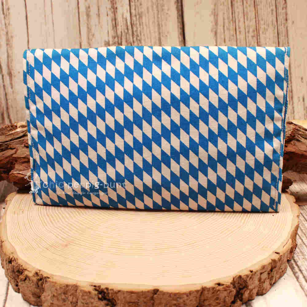 Wir lieben Stoffe, die sofort Heimatgefühle wecken und für gute Laune sorgen! Die Außenseite besticht durch den klassischen bayerischen Look: blau-weiße Rauten, die an blauen Himmel und weiße Wolken erinnern. Dieses Design macht deine neue Münztasche zum absoluten Highlight – egal ob im Biergarten, beim Einkaufen oder auf der Wiesn. Doch der Clou wartet im Inneren: Beim Öffnen blickst du auf einen schlichten, blauen Stoff, der perfekt zum äußeren Muster passt. Ein robuster Kunststoffdruckknopf verschließt das Fach zuverlässig. So wird dein Hab und Gut sicher verwahrt, während du das Leben genießt.