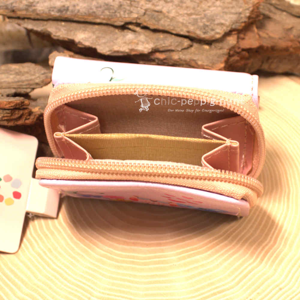 Dieser minimalistische Geldbeutel überzeugt mit praktischen Fächern. Du öffnest ihn per Druckknopf und hast sofort Zugriff auf deine Geldscheine. Ein weiteres Fach, das sich mit einem Reißverschluss verschließen lässt, hat zwei kleine Unterteilungen, die speziell für deine Münzen bzw. dein Kleingeld gedacht sind. Diese smarte Einteilung sorgt dafür, dass du nie wieder in deinem Portemonnaie kramen musst. Die Vorder- und Rückseite sind mit dem niedlichen Eulen-Motiv versehen.