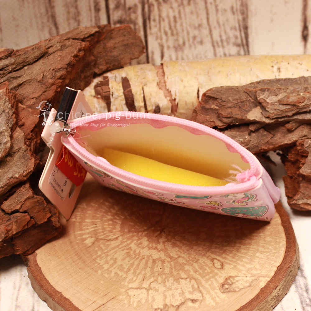 Damit Ihre Schätze nicht unfreiwillig auf Wanderschaft gehen, umschließt ein stabiler Reißverschluss das gesamte Fach. Mit einem flüssigen Handgriff ziehen Sie den Zipper zu und verriegeln den Inhalt. Der Verschluss wurde so konstruiert, dass er auch bei häufiger Benutzung leichtgängig bleibt. Durch den umlaufenden Schutz wird effektiv verhindert, dass Kleingeld in die Tiefen Ihrer Tasche purzelt. Alles bleibt genau dort, wo es hingehört: in Ihrem stylischen Einhorn-Portemonnaie.
