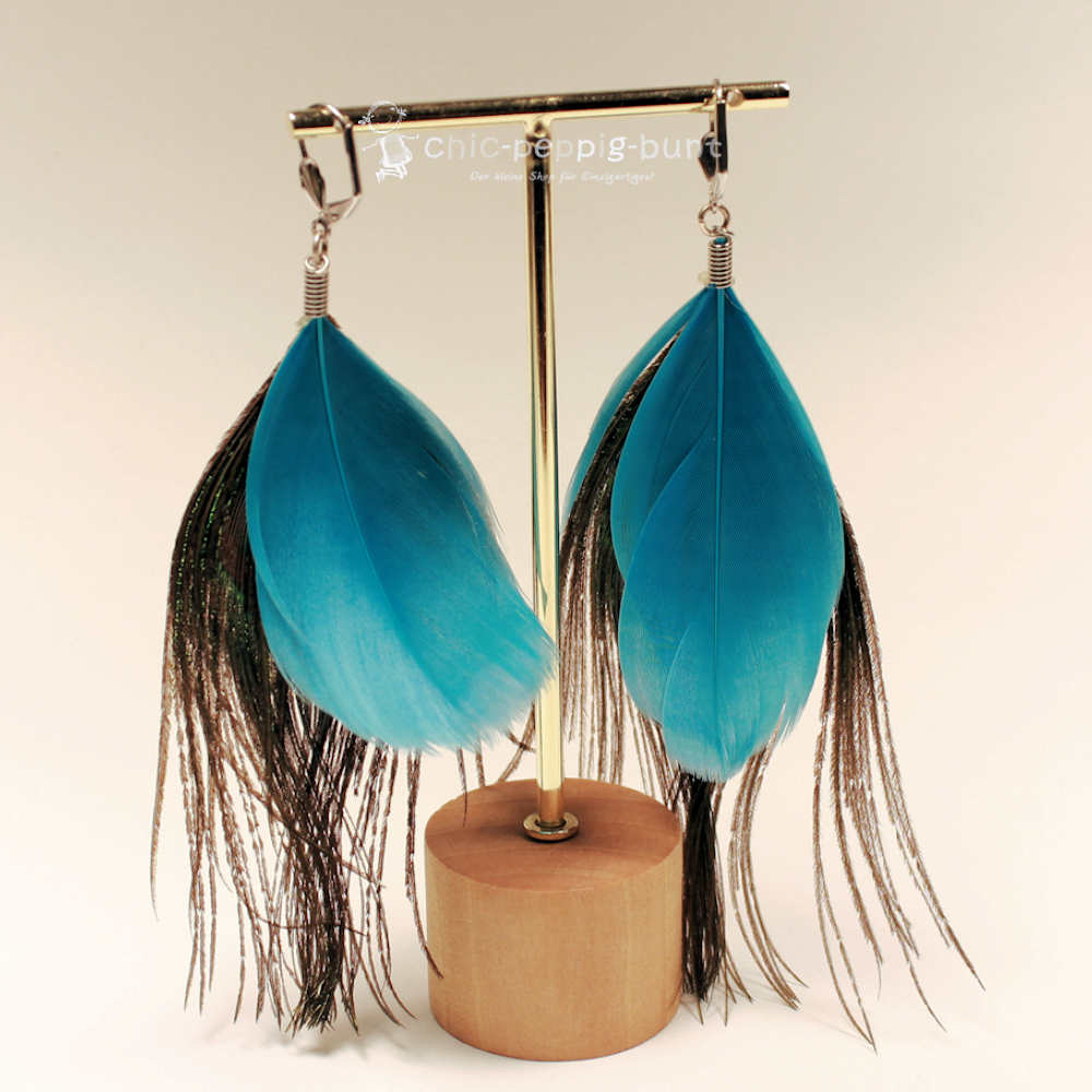 Warum solltest du dich mit dezentem Schmuck begnügen, wenn du die Farben des Sommers direkt am Gesicht tragen kannst? Wir präsentieren dir unsere exklusiven Pfauenfeder-Ohrringe in leuchtendem Türkis. Diese Schmuckstücke verwandeln jedes schlichte Outfit sofort in ein modisches Highlight. Die Federn schimmern wie kristallklares Wasser und bringen echtes Urlaubs-Feeling direkt zu dir nach Hause. Wir fertigen jedes Paar mit viel Herzblut und Liebe zum Detail unter unserem Label „chic-peppig-bunt“ an. Dieser Modeschmuck ist weit mehr als nur ein Accessoire; er ist ein Ausdruck deiner puren Lebensfreude. Ob du beim Fasching als exotische Schönheit glänzt oder dein Boho-Kleid für die Beach Party aufpeppst – diese Hänger garantieren dir bewundernde Blicke!