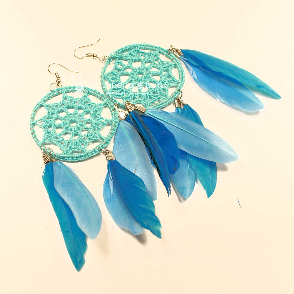 Trotz ihrer beeindruckenden Größe tragen sich die Ohrringe wunderbar leicht. Die feinen Federn wiegen fast gar nichts, sodass du den ganzen Abend unbeschwert durchtanzen kannst. Das Motiv der gehäkelten Traumfänger sorgt für einen verspielten Ethno-Look, der perfekt zu Jeans, Sommerkleidern oder eben deinem nächsten Kostüm passt. Gönn dir ein Stück handgemachte Lebensfreude und zeig der Welt deinen bunten Stil!