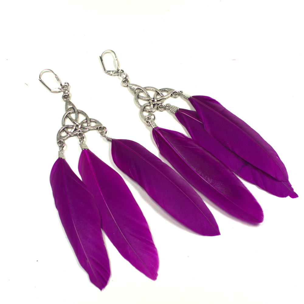 Trotz ihrer imposanten Erscheinung tragen sich diese Ohrringe wunderbar angenehm. Die lila Federn besitzen fast kein Eigengewicht, sodass du auch nach Stunden auf der Tanzfläche kein lästiges Ziehen am Ohrläppchen spürst. Das versilberte Metall bildet ein hochwertiges Gesamtbild, das ideal zu Jeans, lockeren Tuniken oder deinem individuellen Hippie-Outfit passt. Gönn dir ein Stück handgemachte Lebensfreude und zeig der Welt deinen bunten, peppigen Stil!