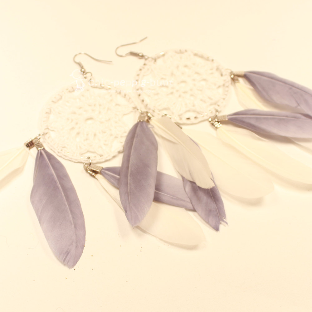 Dein Statement-Piece – Traumfänger Ohrringe in Weiß & Grau