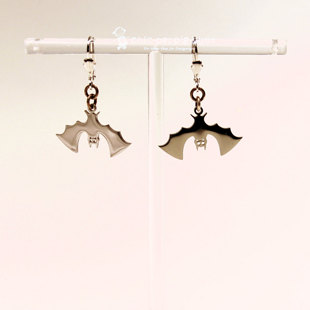 Trotz der robusten Edelstahl-Qualität tragen sich diese Ohrringe wunderbar unbeschwert und leicht. Da die Fledermäuse flach gearbeitet sind, belasten sie deine Ohren kaum. Du wirst auch nach vielen Stunden in der Geisterbahn kein lästiges Ziehen spüren. Der silberfarbene Modeschmuck bildet einen hochwertigen Kontrast zu schwarzen Kleidern, rockigen Outfits oder deinem individuellen Kostüm. Gönn dir ein Stück handgemachte Lebensfreude (auch wenn es Fledermäuse sind!) und zeig der Welt deinen peppigen Stil!