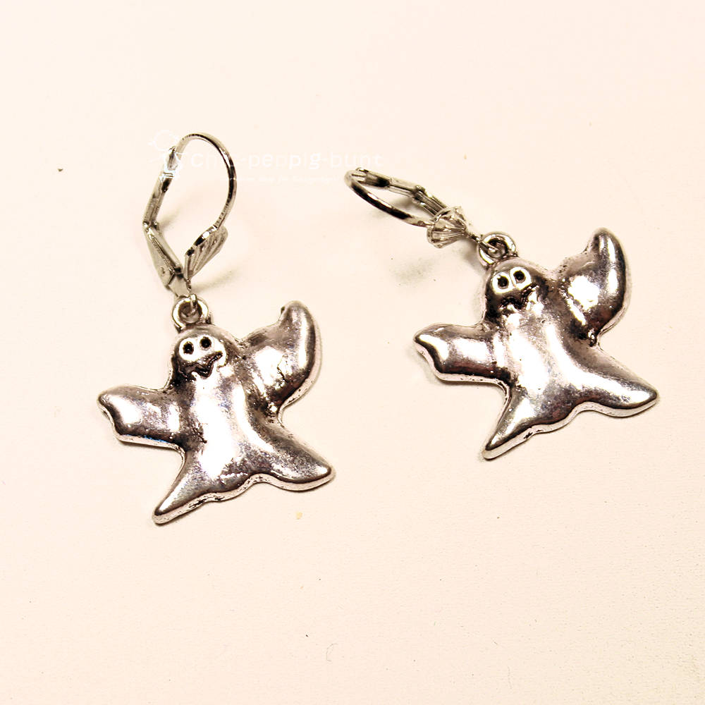Suchst du nach einem Accessoire, das deine Vorliebe für das Übernatürliche zeigt, ohne dabei direkt wie ein Bettlaken auszusehen? Wir präsentieren dir Ohrringe, die garantiert für schaurig-schöne Blicke sorgen! In unserer Kreativwerkstatt fertigen wir unter dem Label chic-peppig-bunt jedes Paar in liebevoller Handarbeit an. Diese versilberten Hänger zeigen einen freundlichen Geist, der bereit für jede Schandtat ist.